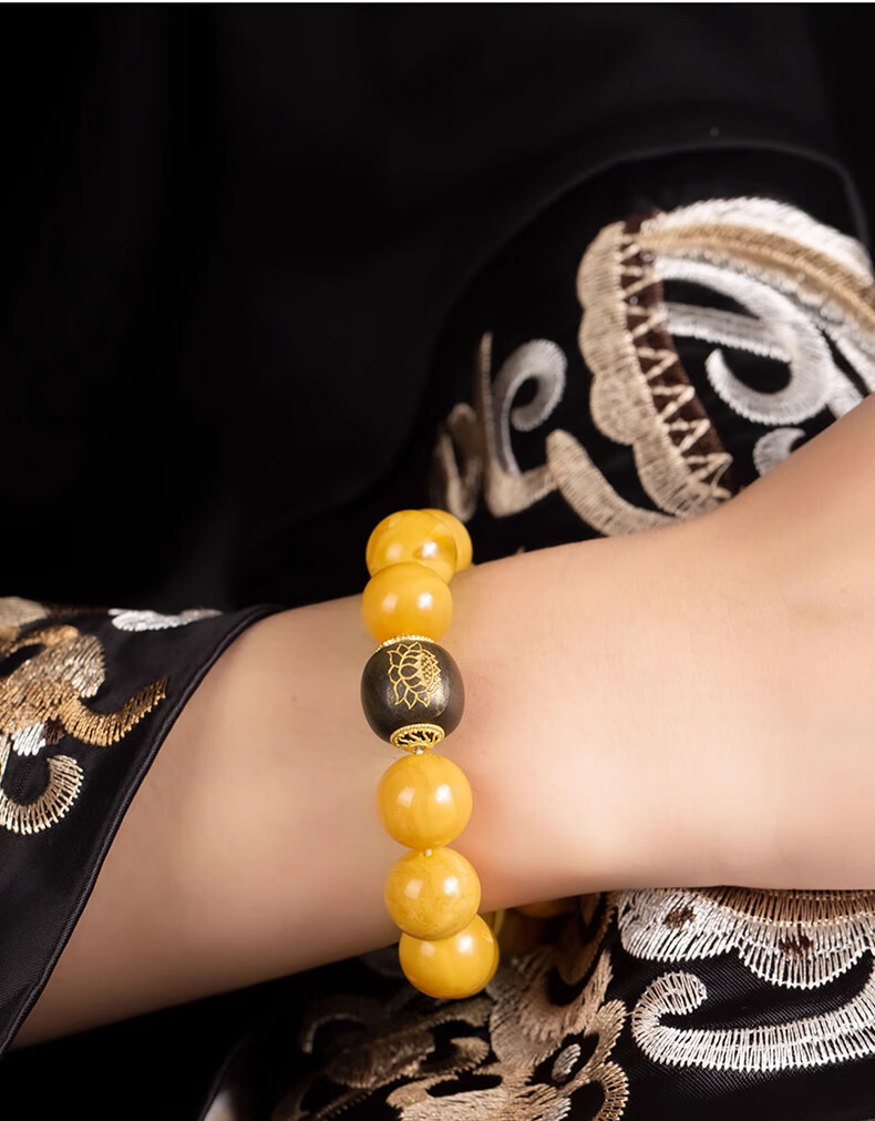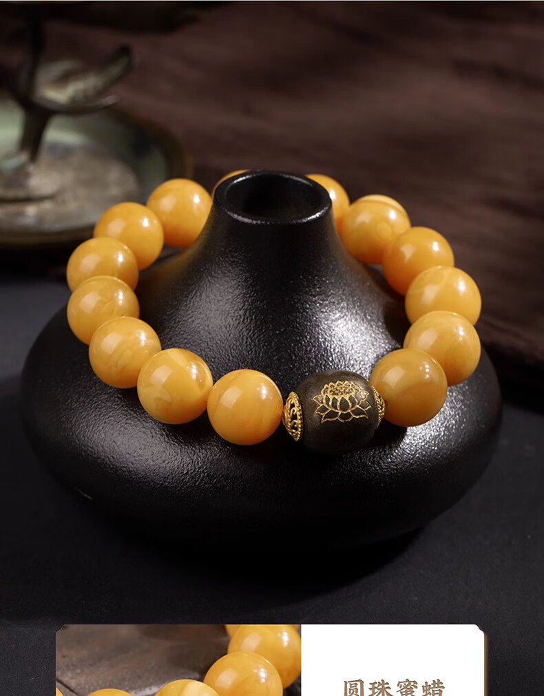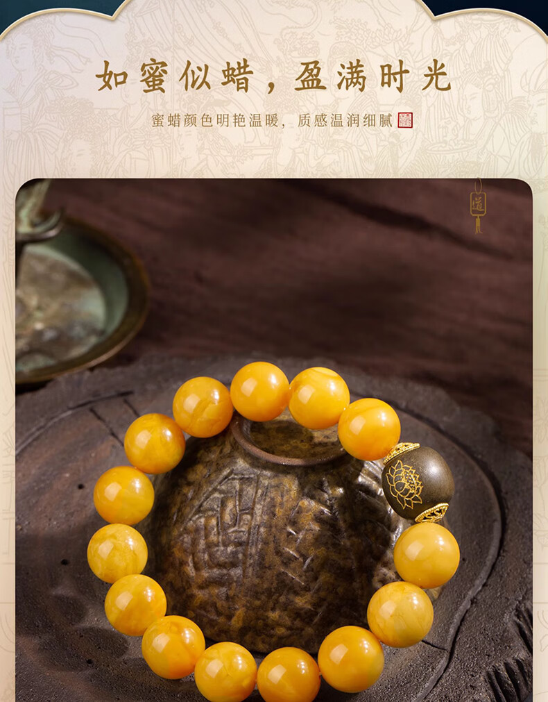 Layun Feiyin natural high-quality Russian beeswax bracelets for men and women yellow floating flower old sandalwood 7A amber bracelet high-end gift flawless 7A floating flower beeswax 10-11mm