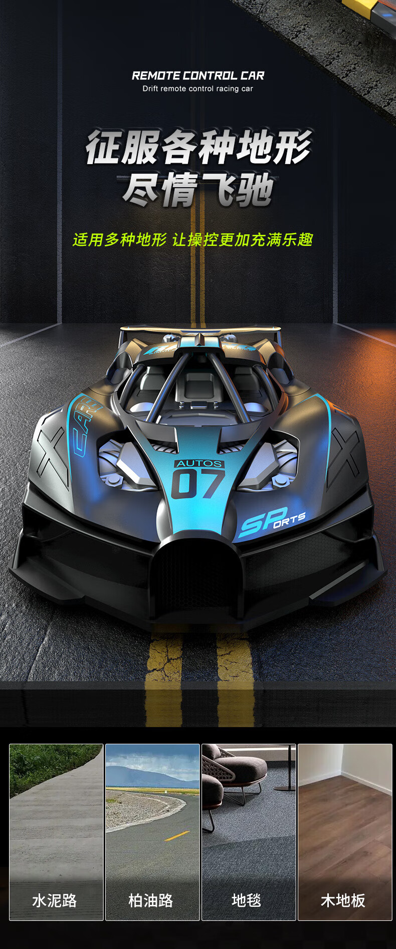 Yunya remote control Bugatti car children's toy boy racing car can drift and charge 3-6-10 year old boy birthday gift small remote control Bugatti sports car orange