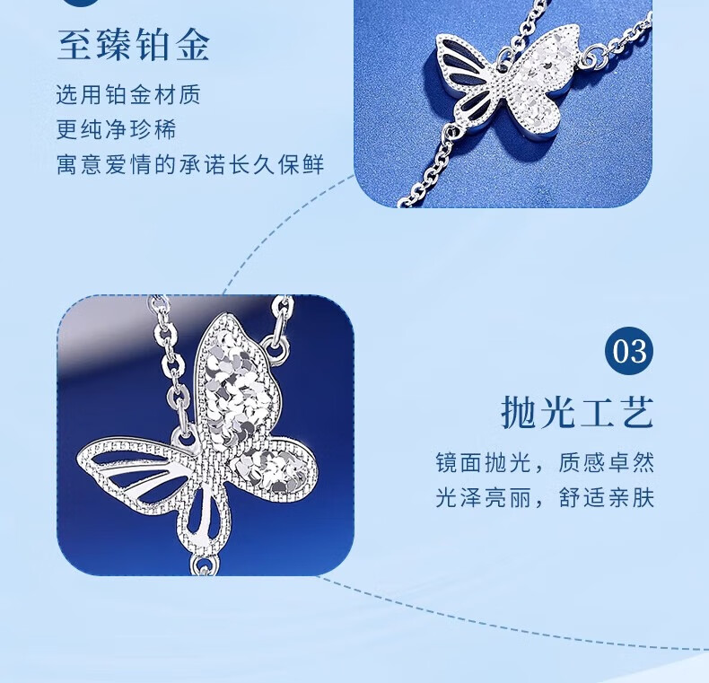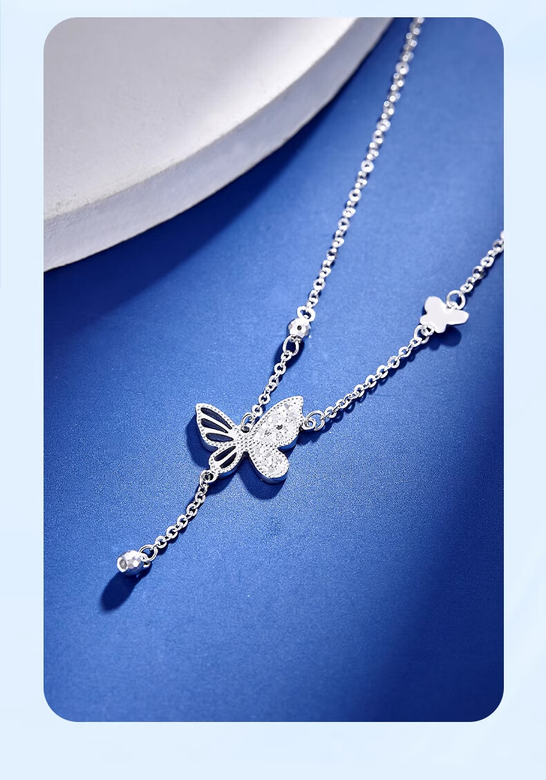 CHINA GOLD PT950 Platinum Butterfly Tassel Necklace Women's Platinum Necklace Valentine's Day Birthday Gift for Girlfriend and Wife Jingsuda* Twin Butterfly Series + Zhongjin Gift Box