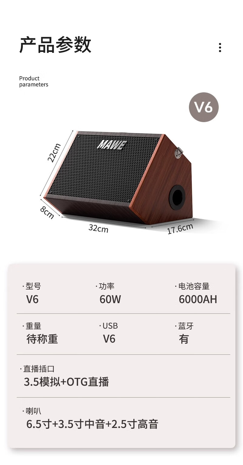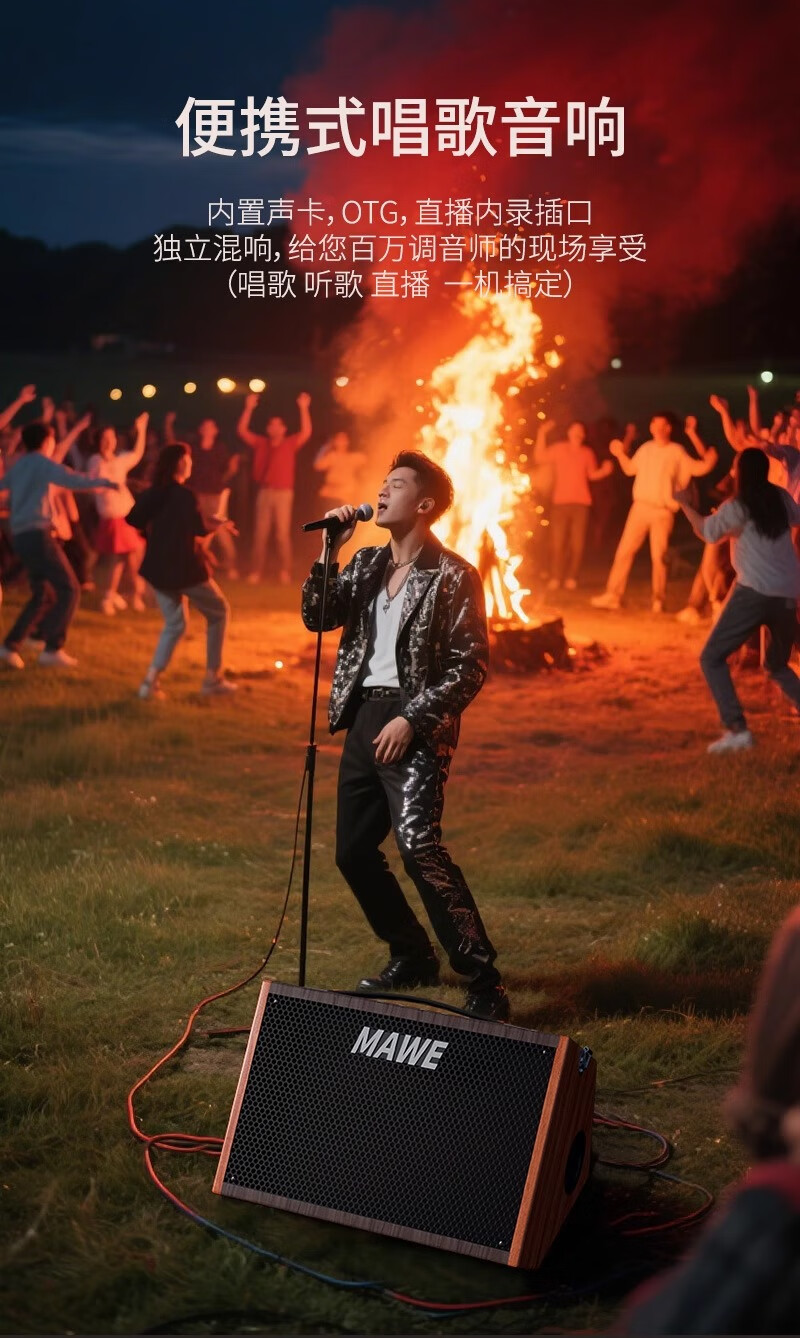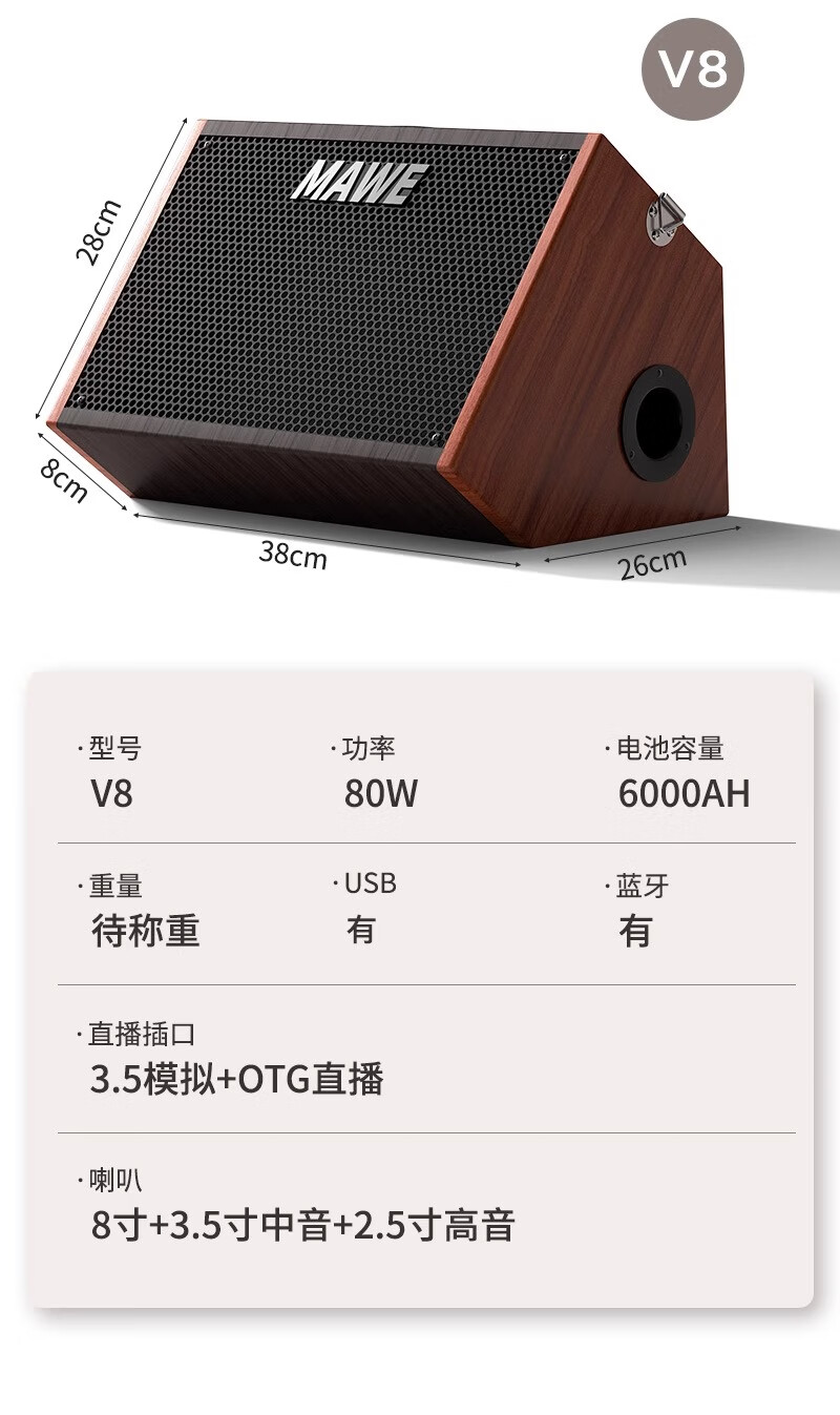 MAWE Audio Outdoor Karaoke Singing Bluetooth Speaker Musical Instrument Professional Live Broadcast Internal Recording Performance Charging Portable Small V8 Audio (Rechargeable Model)
