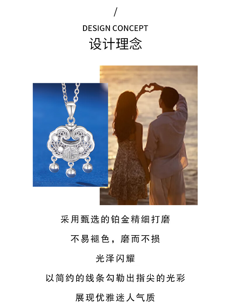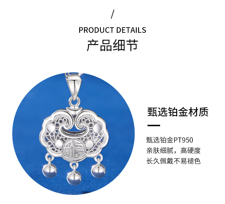 China Jewelry PT950 platinum safety lock pendant for women platinum clavicle necklace birthday anniversary gift for girlfriend and wife platinum fortune lock pendant + brand gift box gold weight about 6.6g, free S925 silver chain