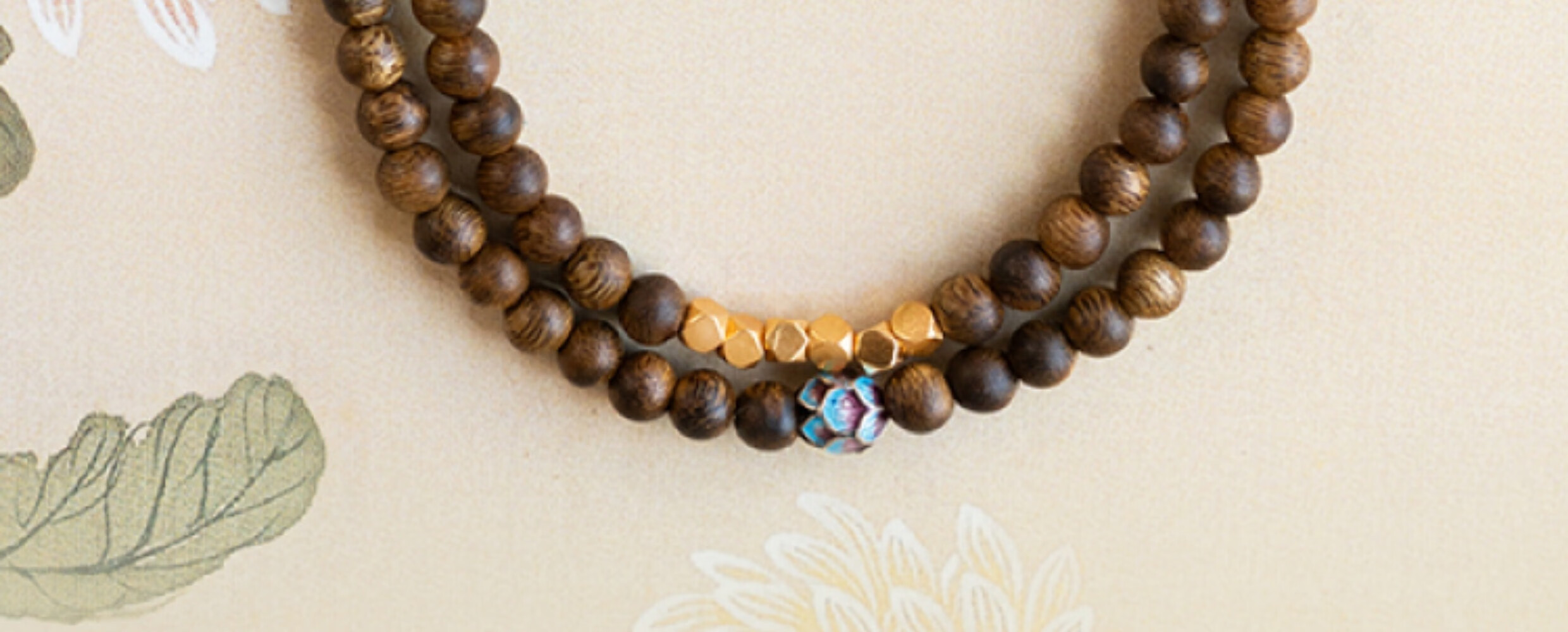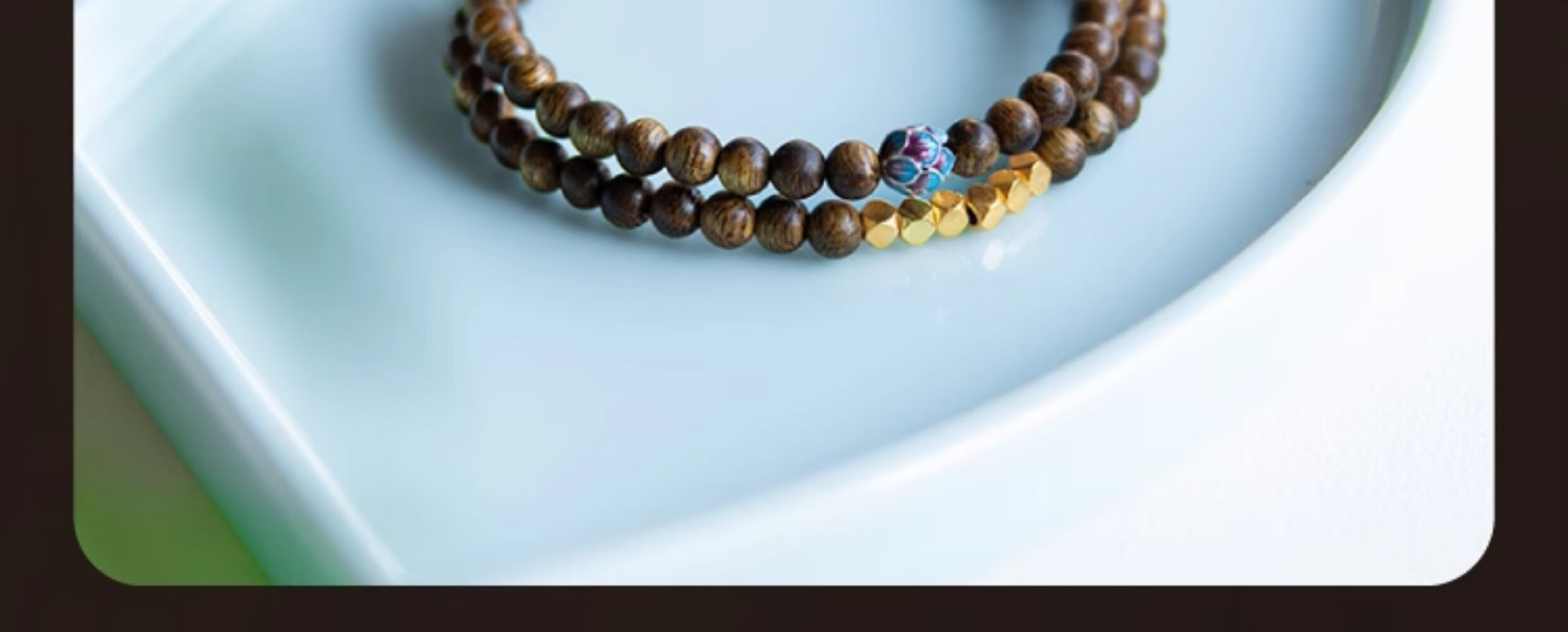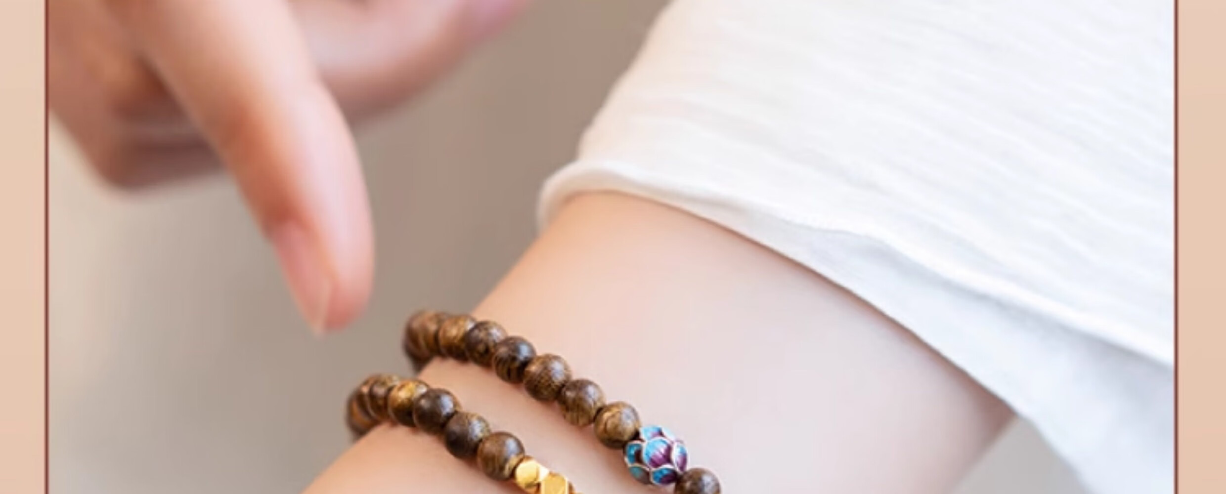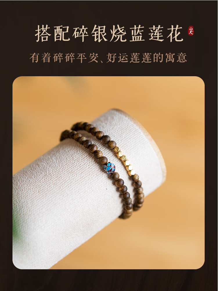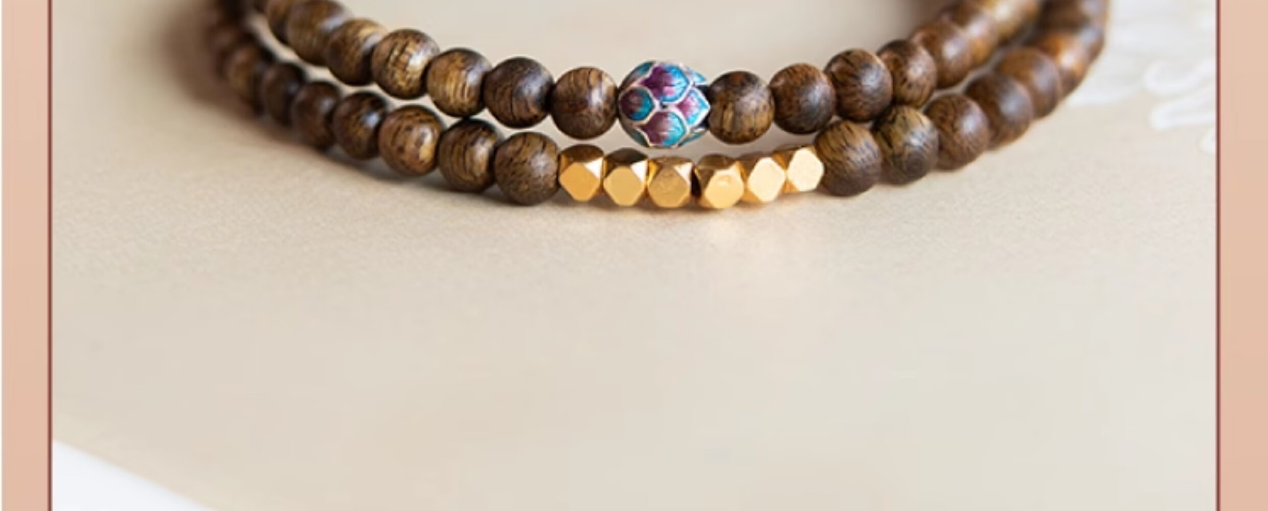 Lanshu (LANSHU) New Chinese Style Faye Wong's Same Style Wooden Bracelet for Women Stacked Multiple Circles of Peace Beads Emotional Stability Bracelet Buddha Beads Cultural Play Golden Lotus Bracelet Double Circle Gift Box
