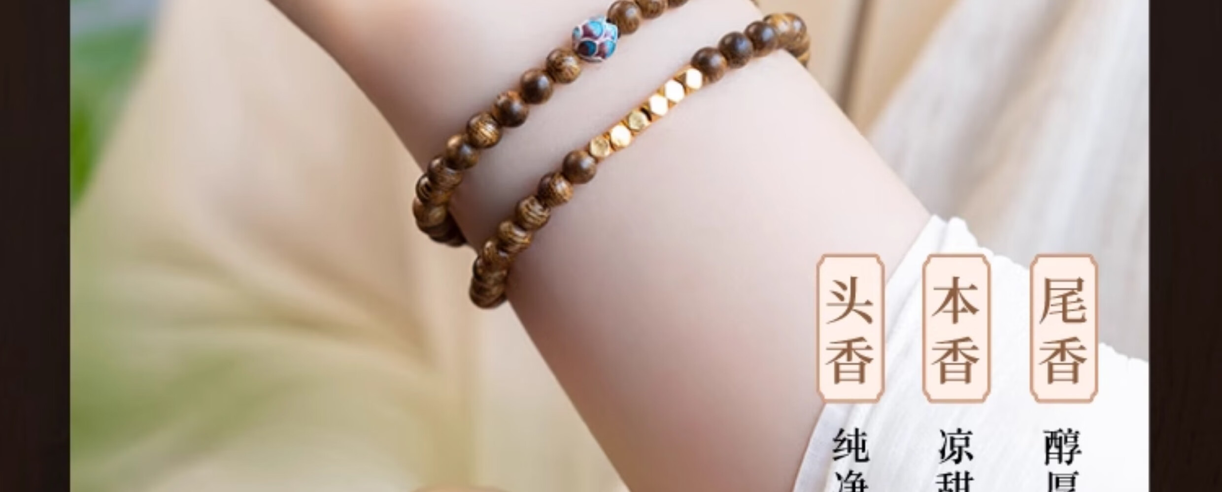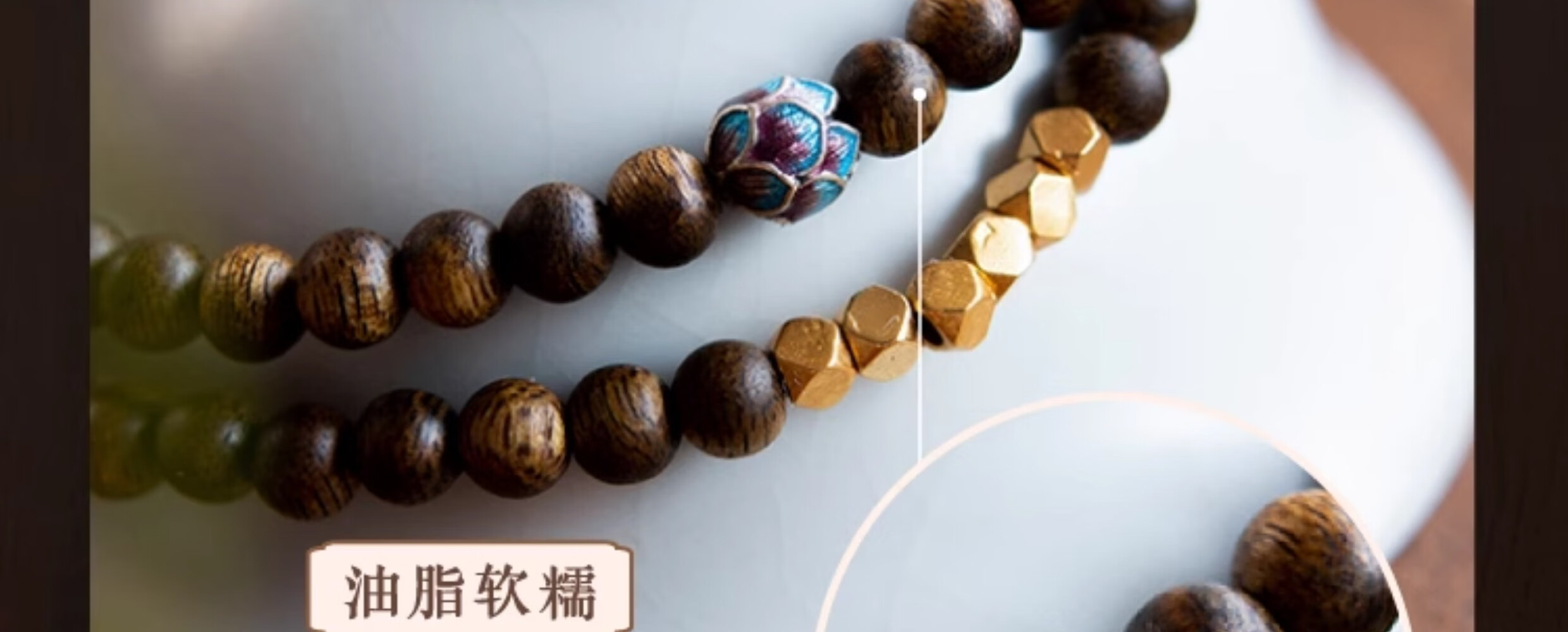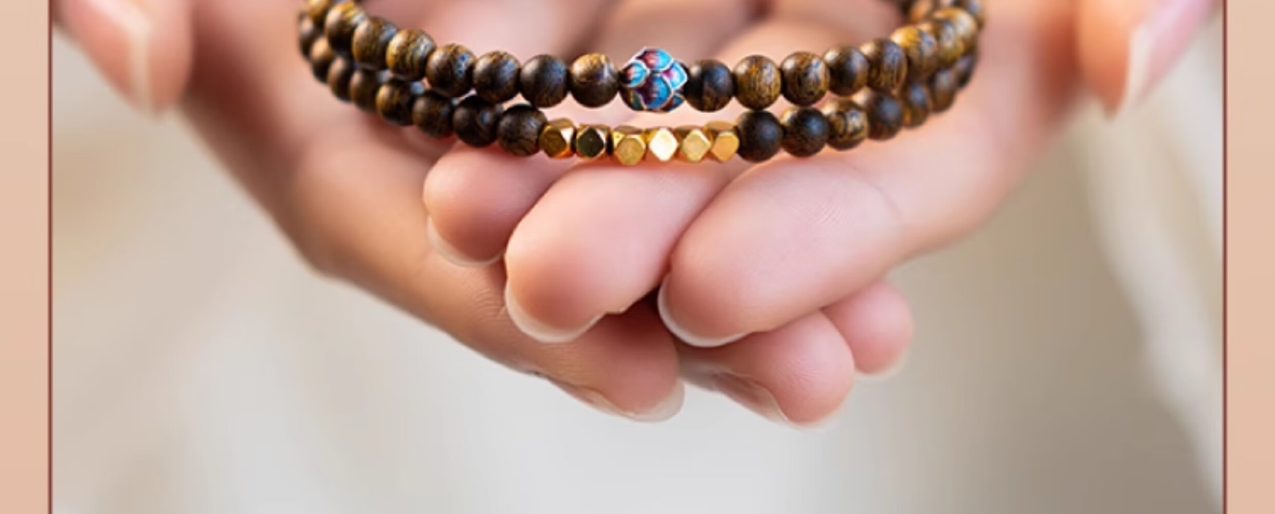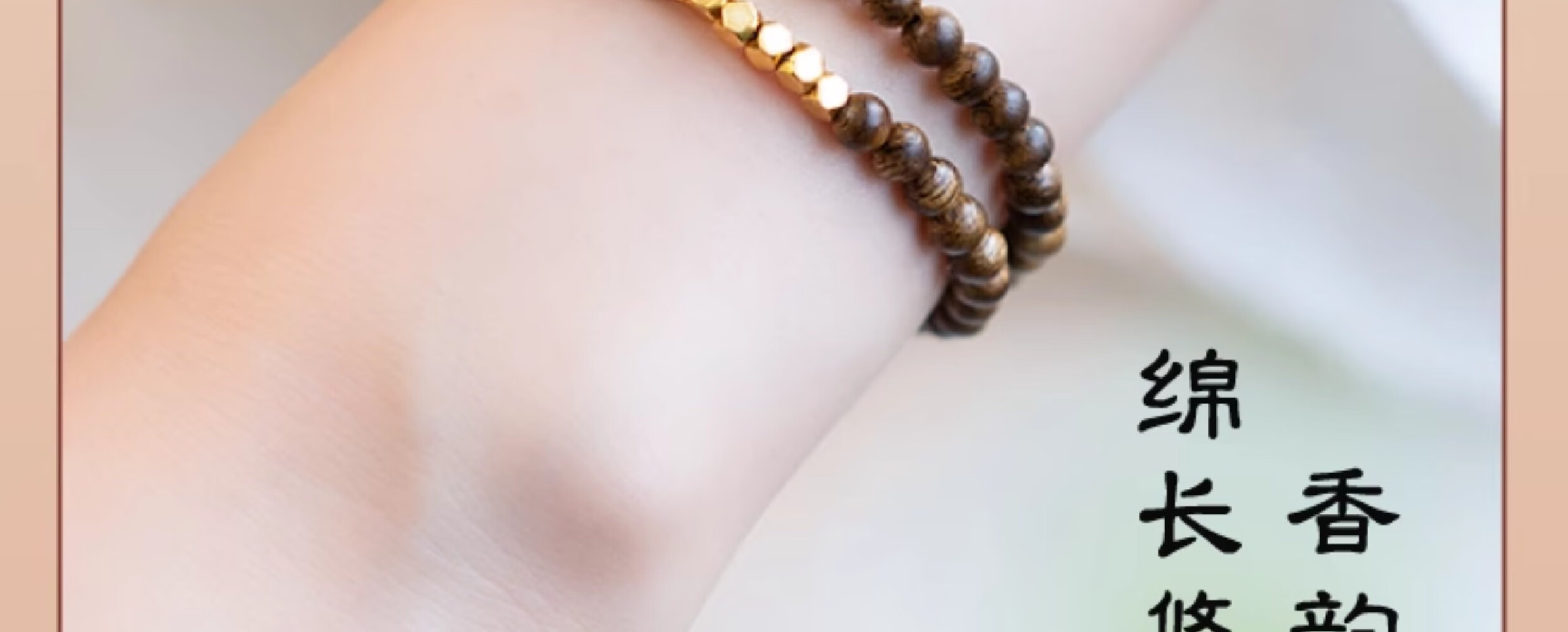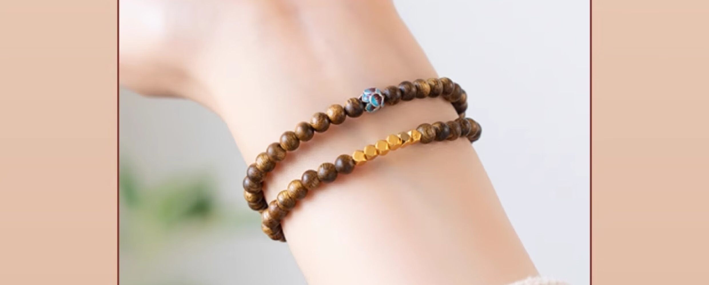 Lanshu (LANSHU) New Chinese Style Faye Wong's Same Style Wooden Bracelet for Women Stacked Multiple Circles of Peace Beads Emotional Stability Bracelet Buddha Beads Cultural Play Golden Lotus Bracelet Double Circle Gift Box