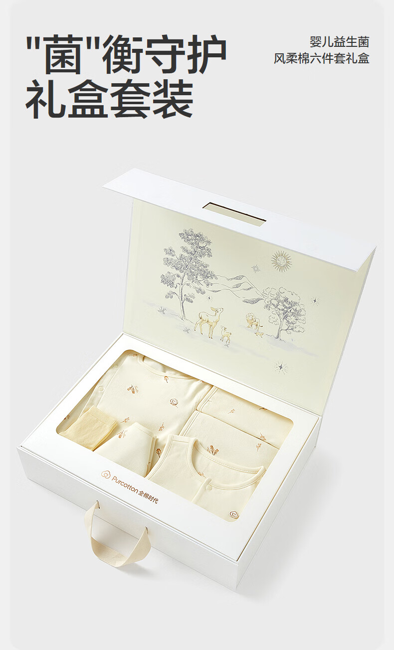 PurCotton 2025 Autumn Baby Probiotics Soft Cotton Six/Seven-piece Gift Box Autumn Leaf Breeze 66cm