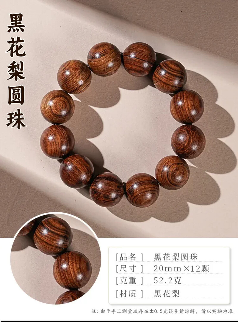 Black rosewood bracelet, old-style beaded and ornamented bracelet, rosewood pill beads, precious jewelry, sandalwood beads for men and women, black rosewood 20mm, 12 plain beads, 1 piece