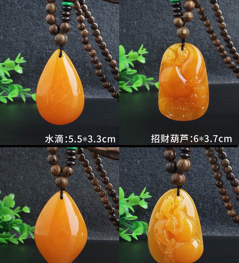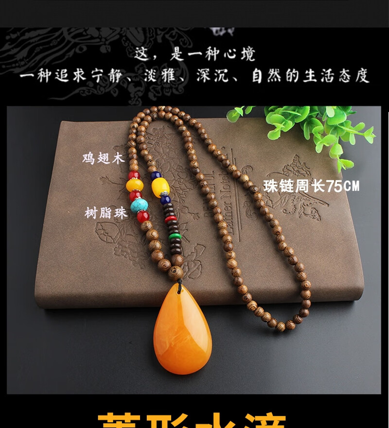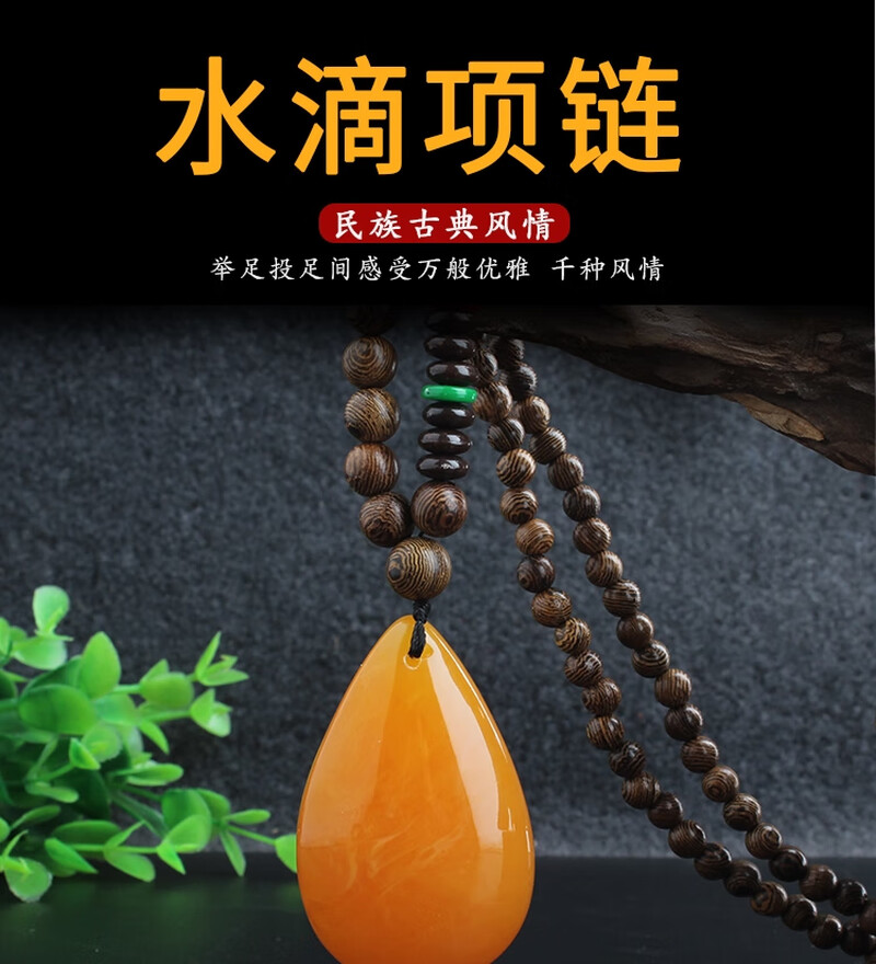 Beeswax pendant sweater chain women's long high-end retro accessories fashion temperament ethnic style decorative necklace large water drop double-sided two-color pattern 1 piece