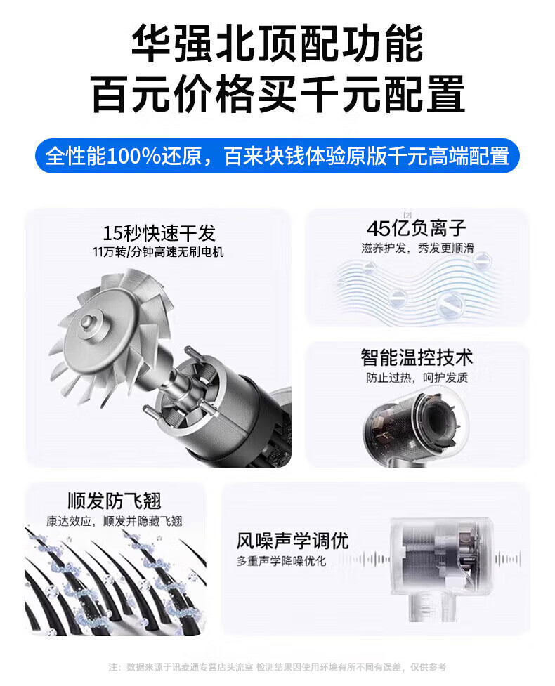 Luolaifen National 3C Certification | 4.5 billion negative ions to nourish and care for hair. High-speed hair dryer for drying hair. Home silent, high-power, non-damaging, constant temperature hair dryer, quick-drying hair salon. Platinum. Official original top configuration with full function 1 1 | Smooth hair care. Single air nozzle. 2025 new top configuration 1 1 | Noise reduction and light sound | 1.8 meters long cord.