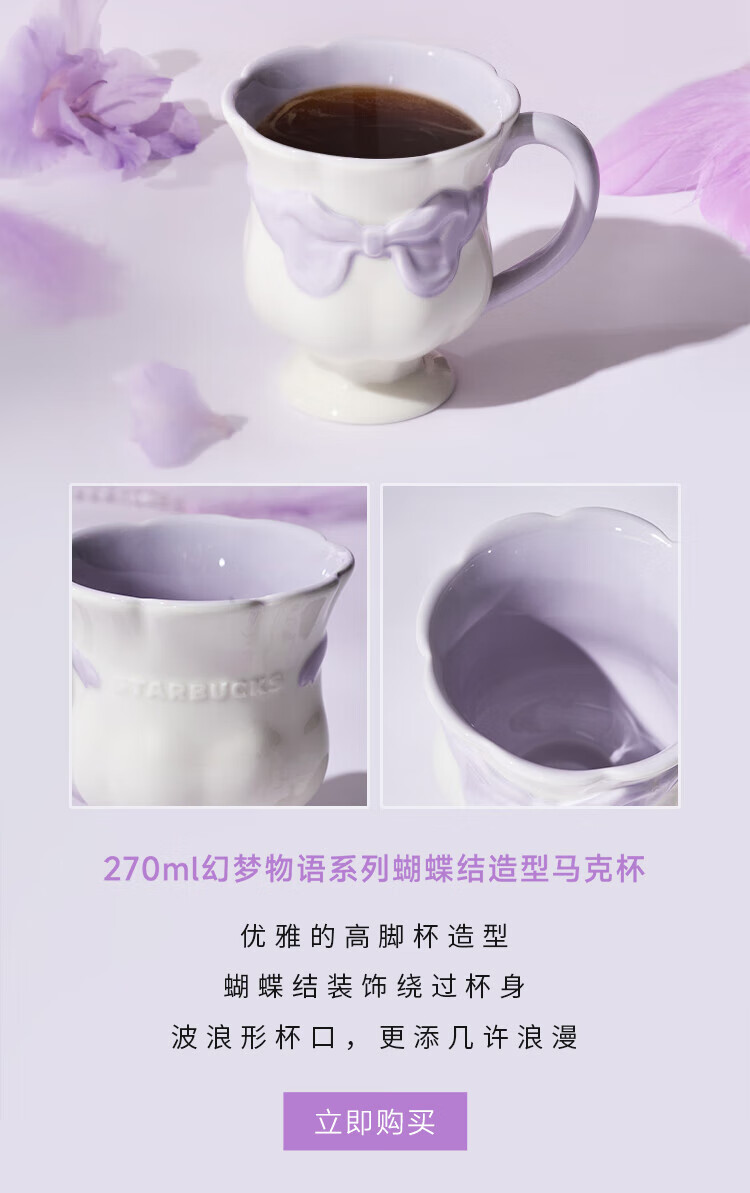 Starbucks Cup Dream Story Series Ceramic Mug High-Looking Desktop Coffee Cup Gift for Men and Women Bow Tie Shape Mug 270ml