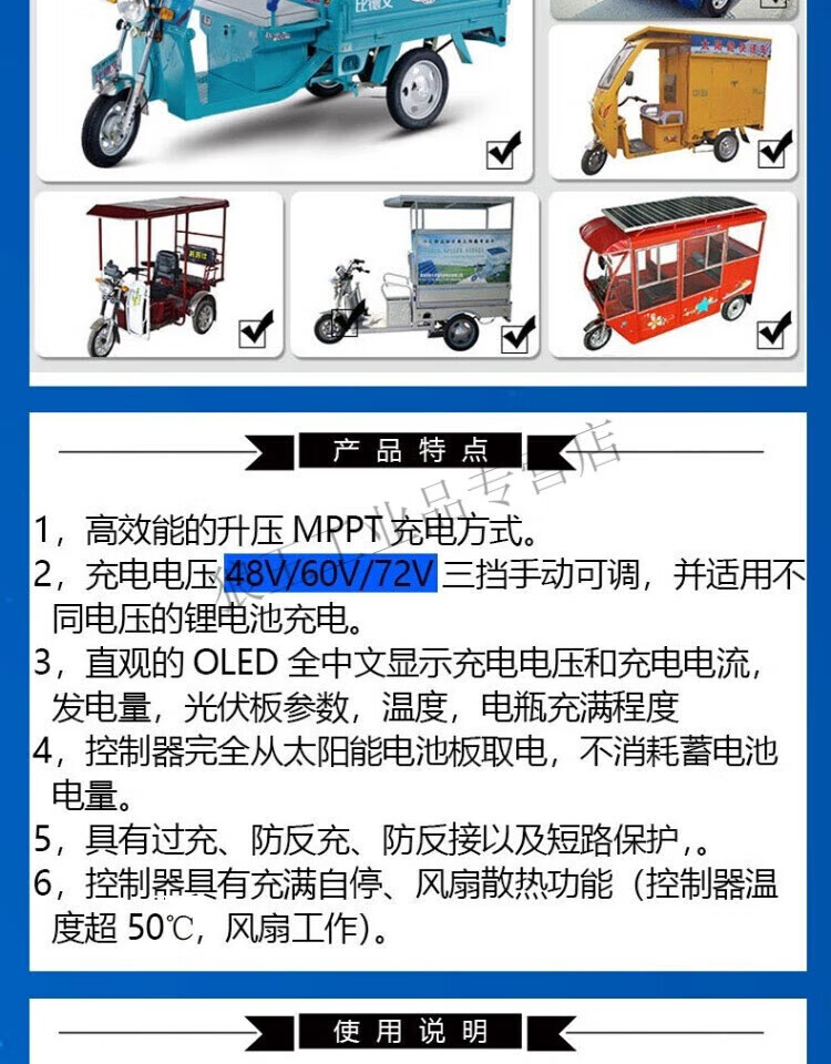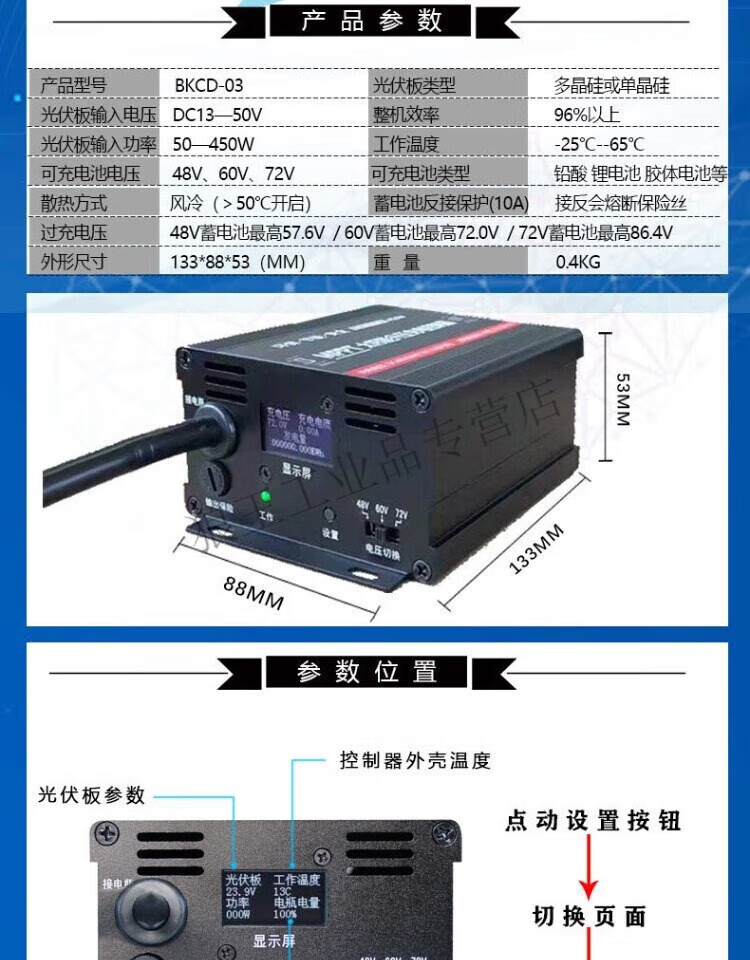 Chuangyu MPPT photovoltaic panel boost controller 450W solar electric vehicle charger 48V60V72V 450W-tube display type