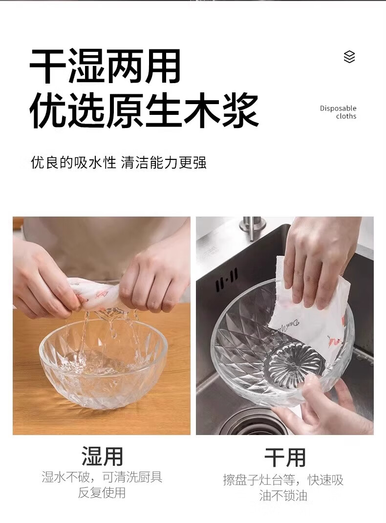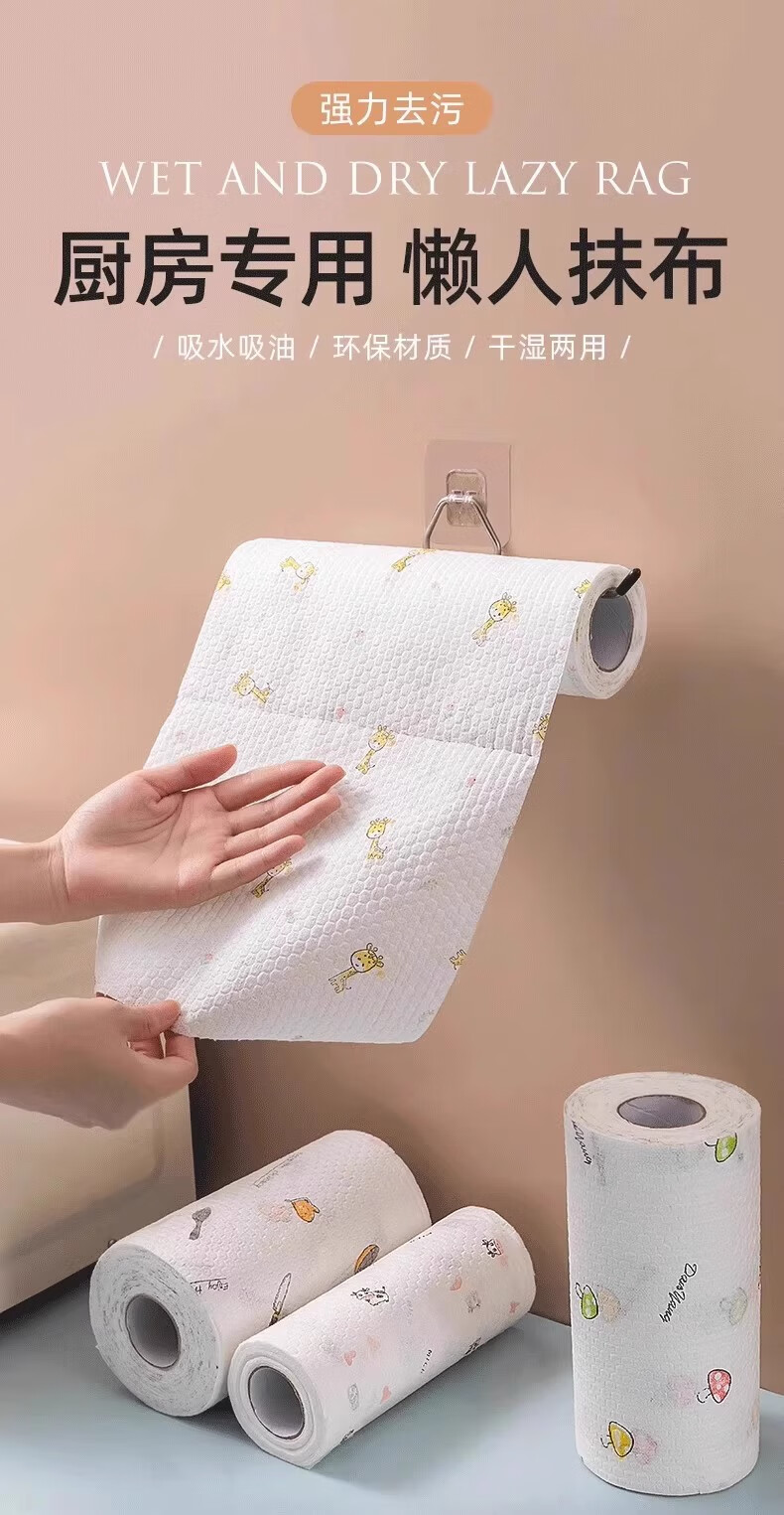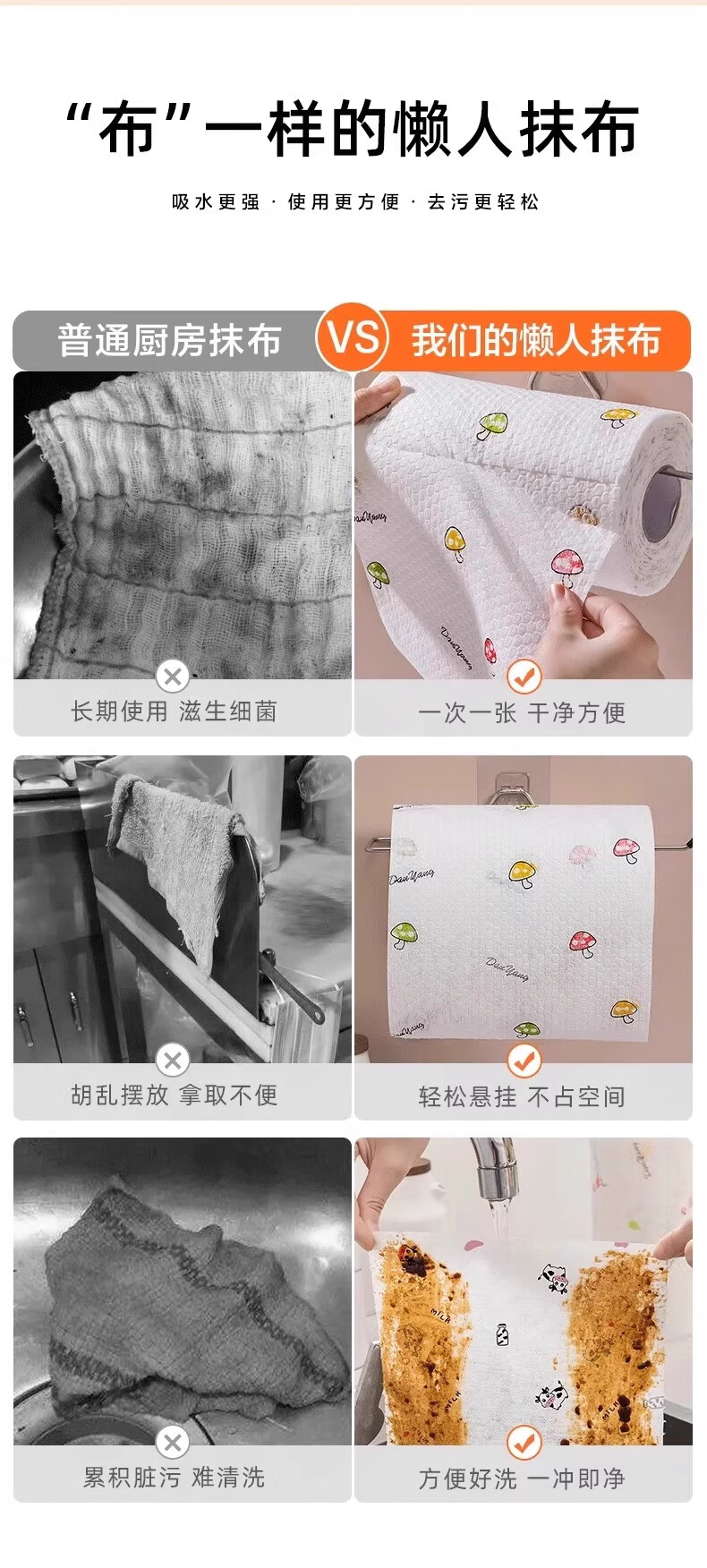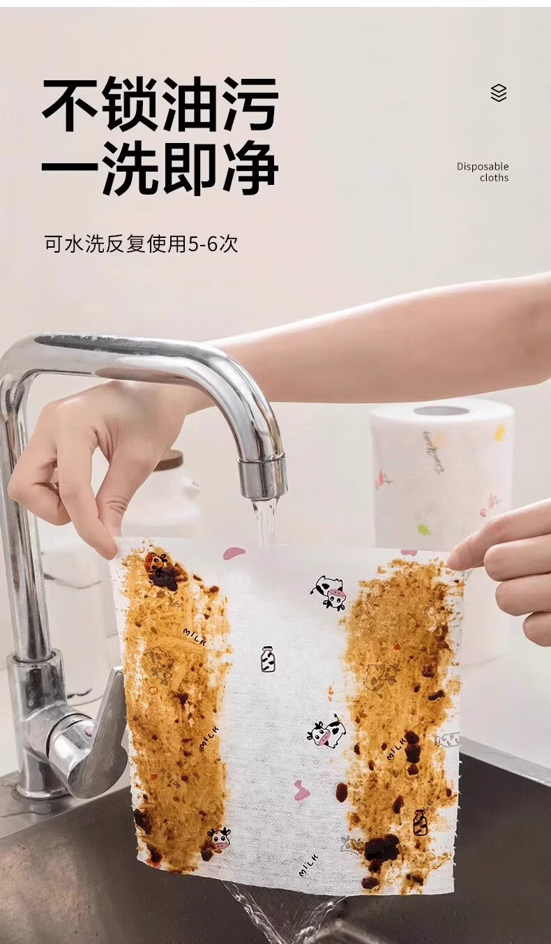 Washable kitchen paper lazy rag wet and dry use absorbent reusable paper disposable jacquard dishwashing cloth 25*22 thick jacquard 1 layer 75 pieces*1 roll 5 rolls
