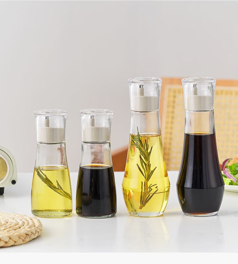 Baijie oil bottle glass oil pot small vinegar bottle household kitchen soy sauce bottle condiment bottle non-drip hanging anti-leakage sesame oil bottle small oil bottle seasoning oil and vinegar pot small 150ml + label sticker stainless steel oil nozzle / non-drip / non-leak / no odor