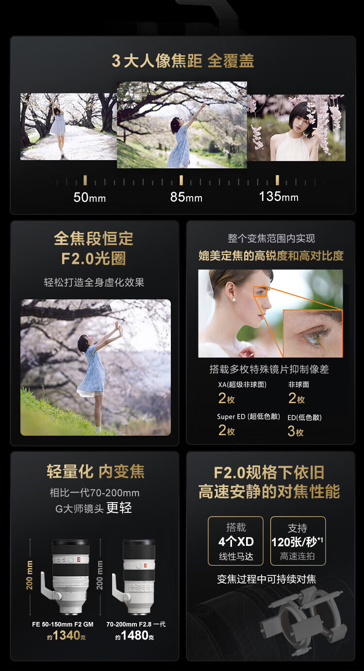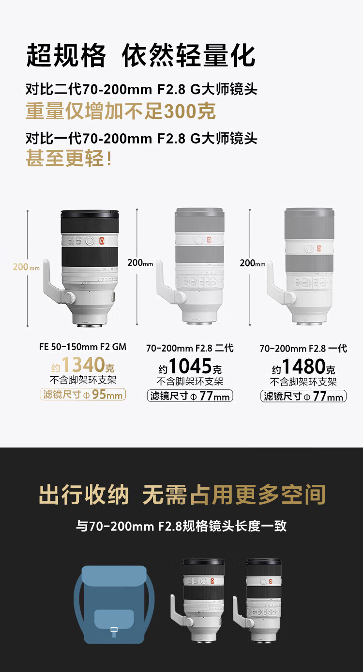 Sony (SONY) FE 50-150mm F2 GM constant F2 large aperture telephoto zoom G master lens (SEL50150GM) lens + Leituo 95MM gold ring UV