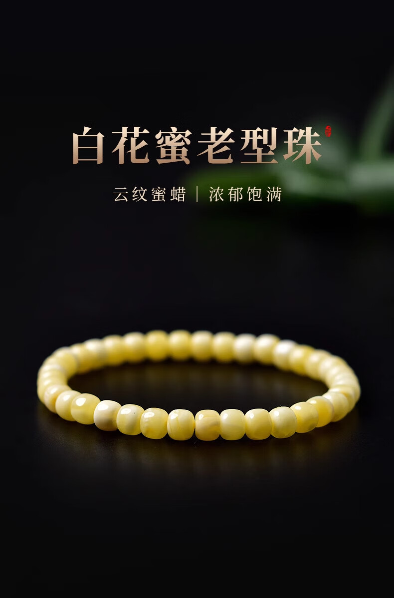 Nine Color Cloud Beeswax Bracelet for Women White Flower Honey Old Type Beads Scattered Beads Raw Stone Single Bead Necklace Pendant Amber Plate Toy Bracelet White Flower Honey Old Type 6MM