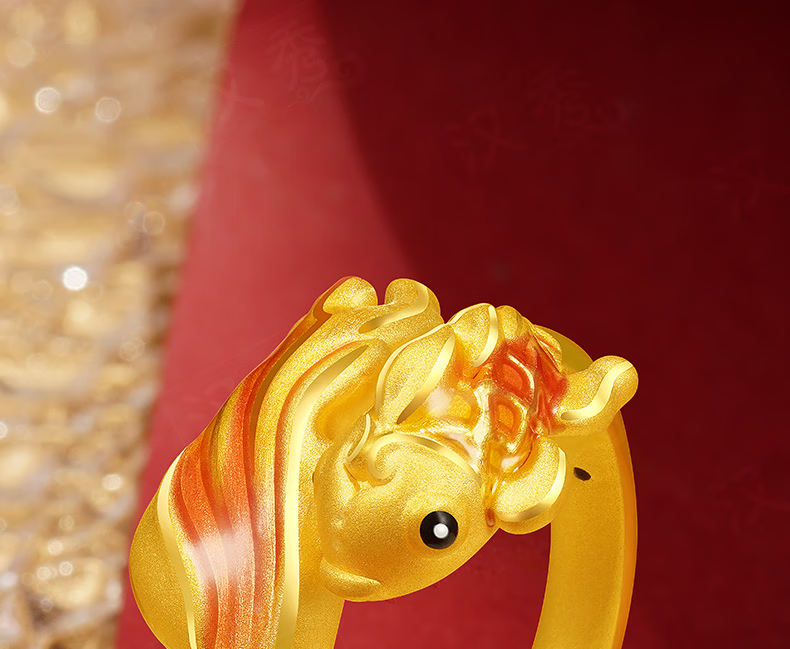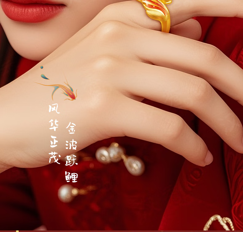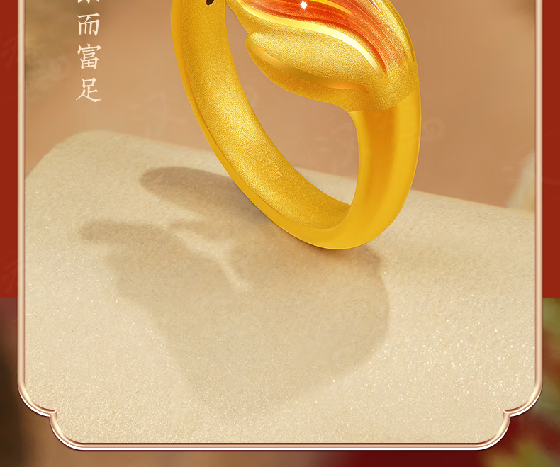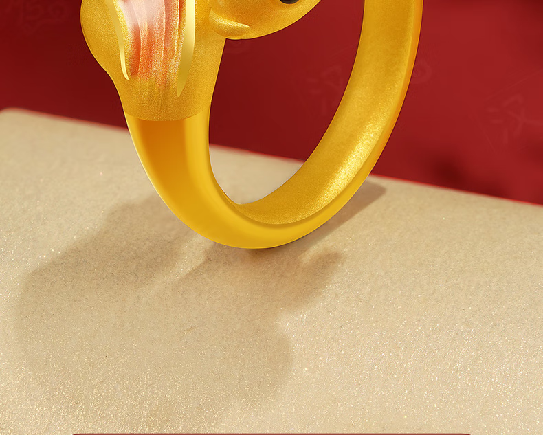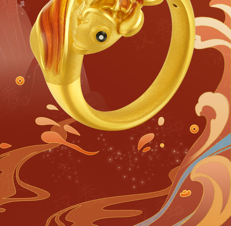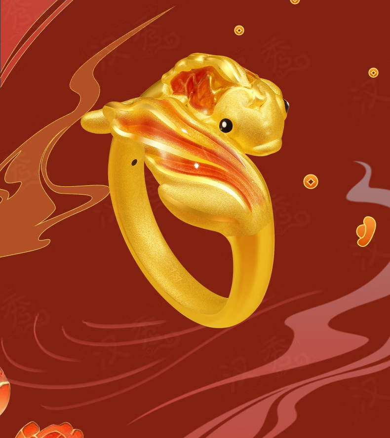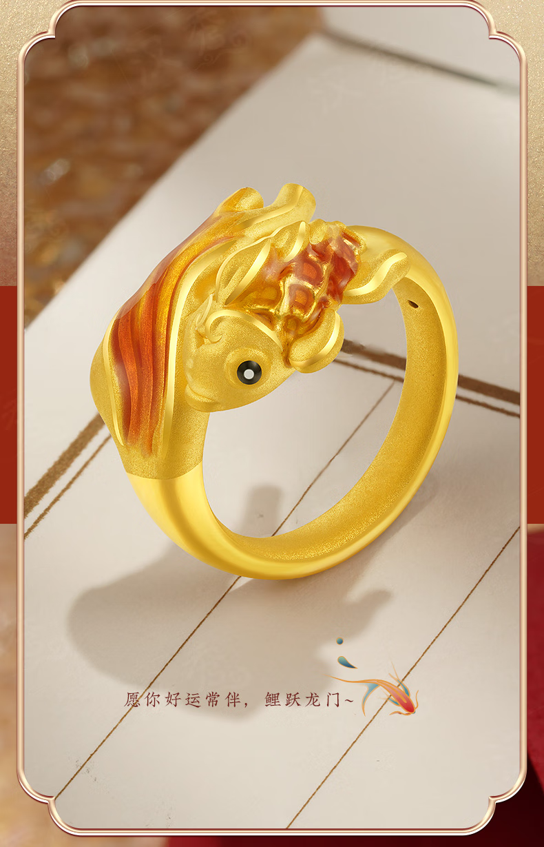 Hanxiu Gold Fenghua Koi Ring Women's Pure Gold New Style Gold Ring Goldfish Jewelry Gift for Wife No. 11 (gold weighs about 2.31 grams)