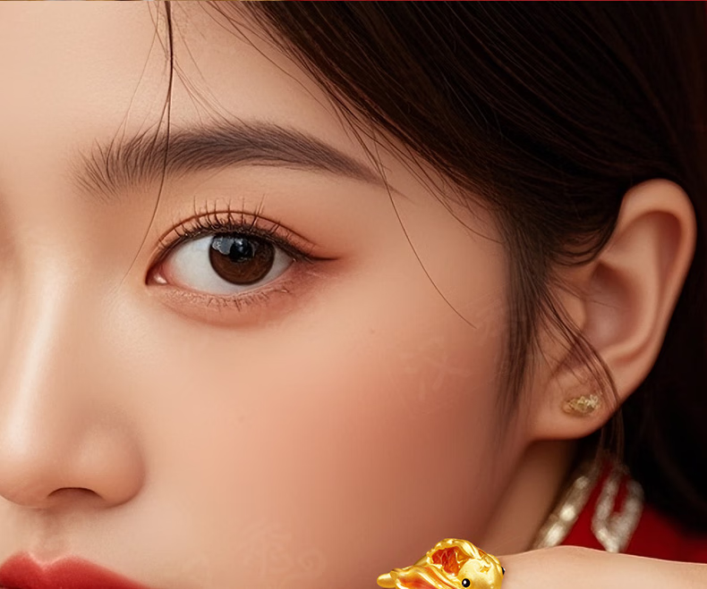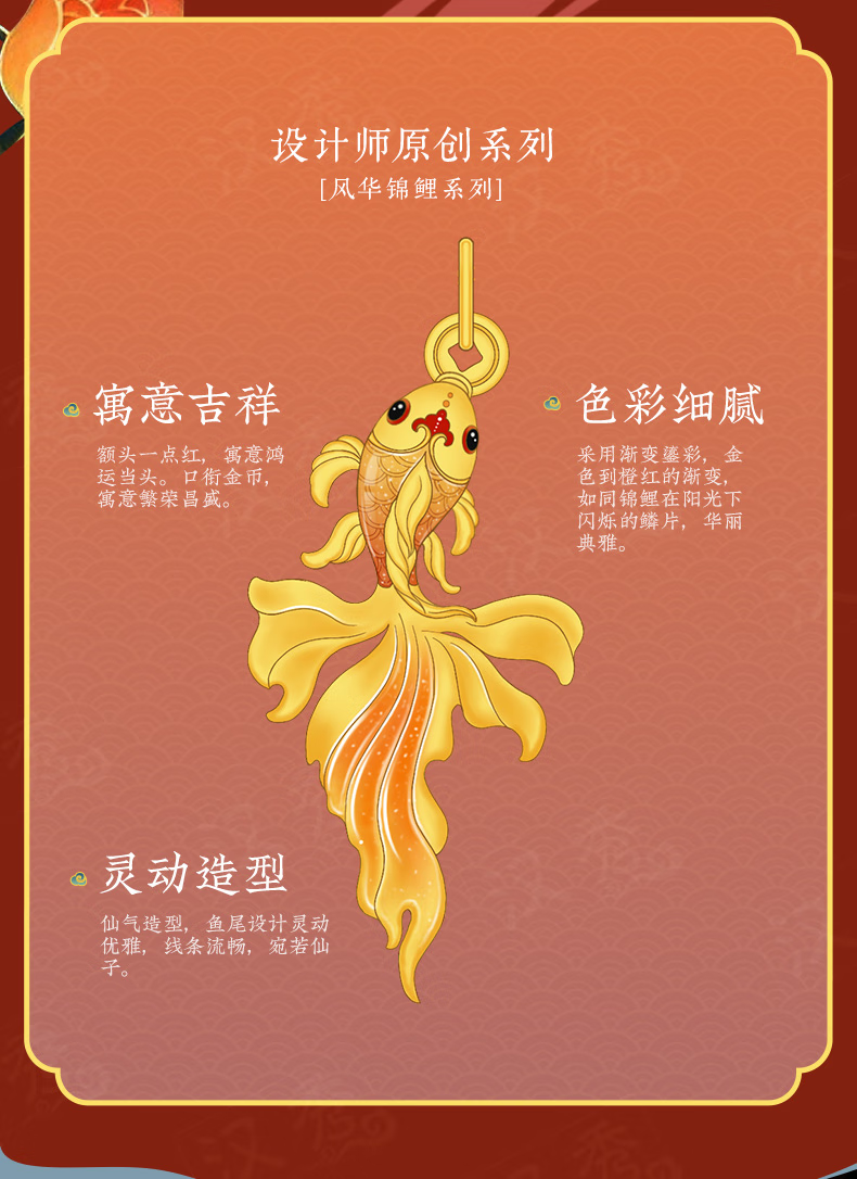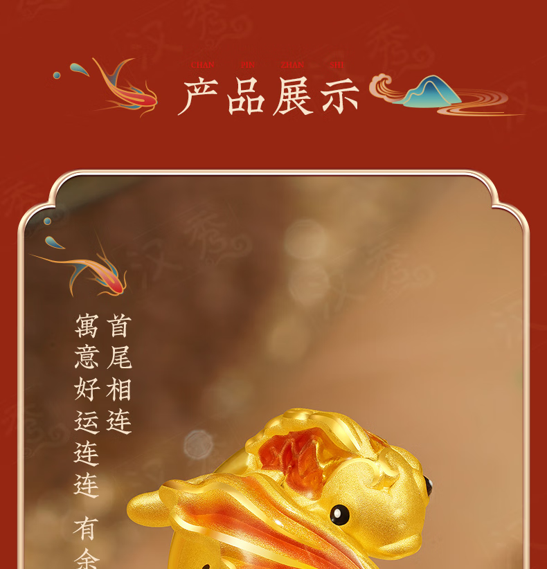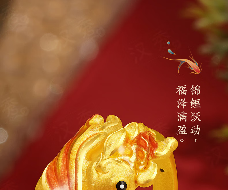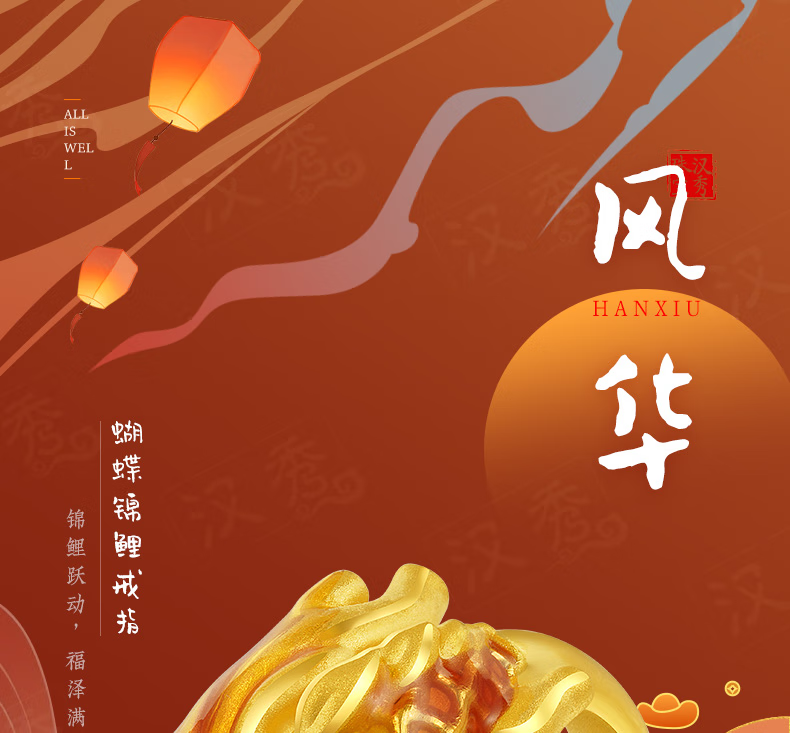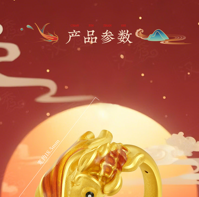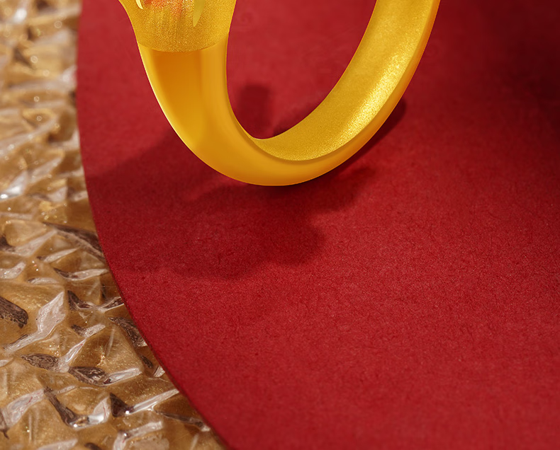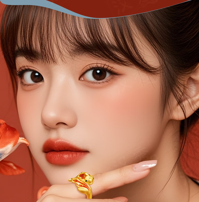Hanxiu Gold Fenghua Koi Ring Women's Pure Gold New Style Gold Ring Goldfish Jewelry Gift for Wife No. 11 (gold weighs about 2.31 grams)
