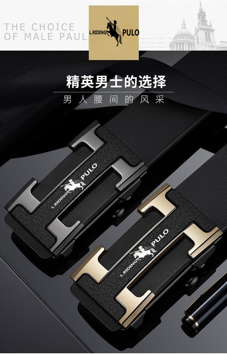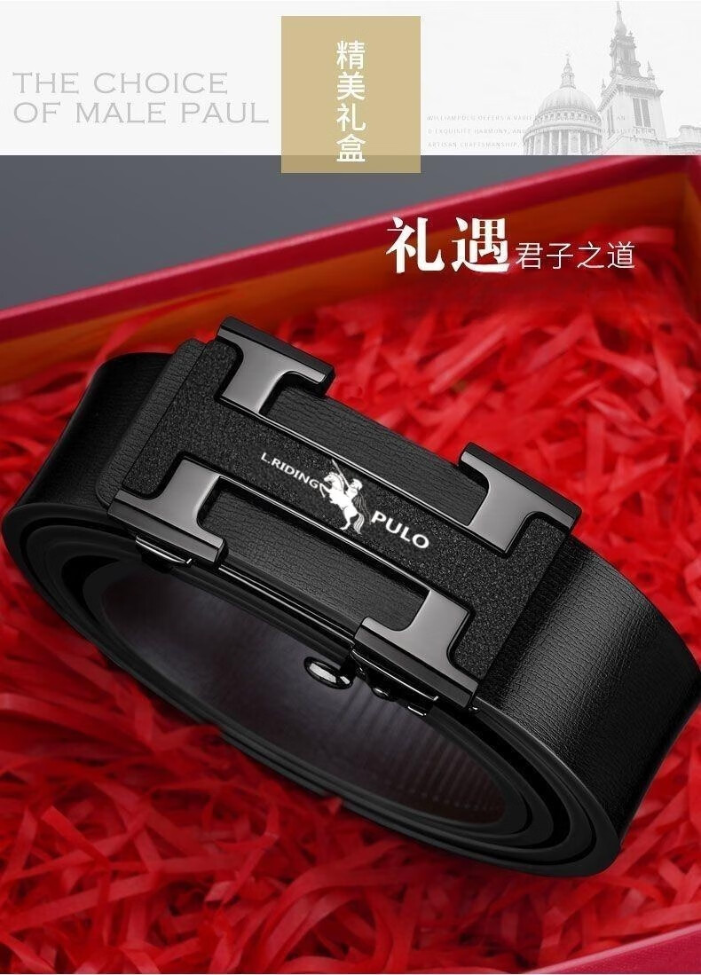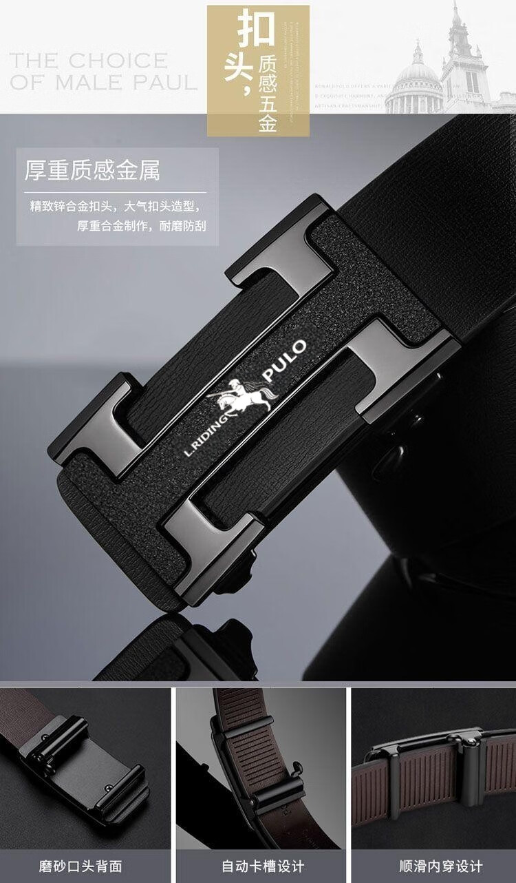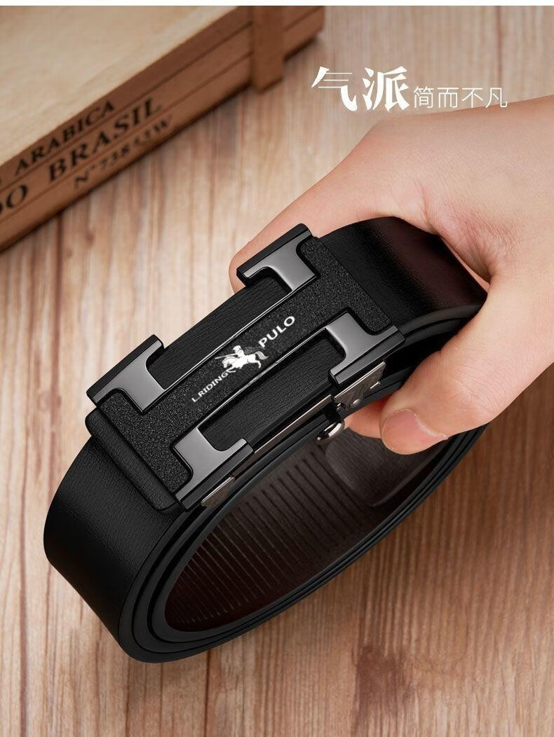 Benefits for newbies Whole cut belt men's business automatic buckle belt retro high-end fashion versatile style black I-buckle 120cm
