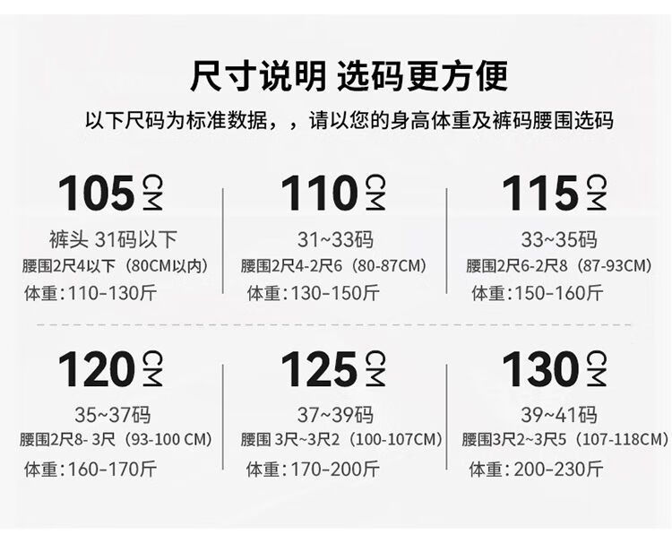 China (cm) 165 / 88-90 170 / 96-98 175 / 108-110 180 / 118-122 185 / 126-130