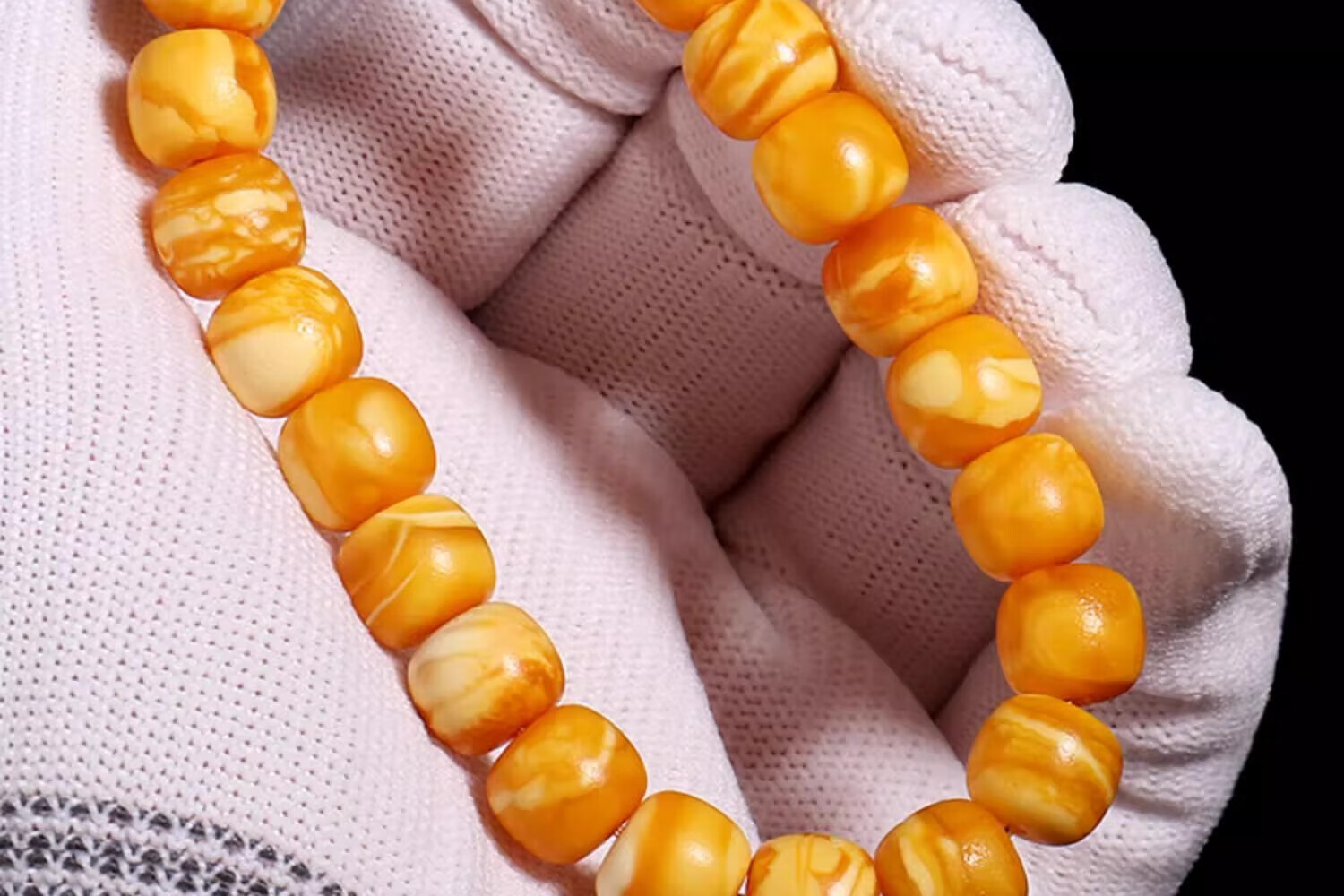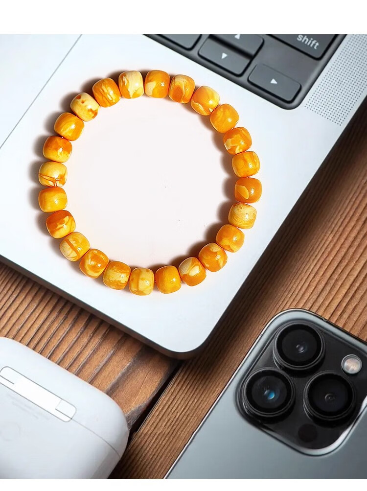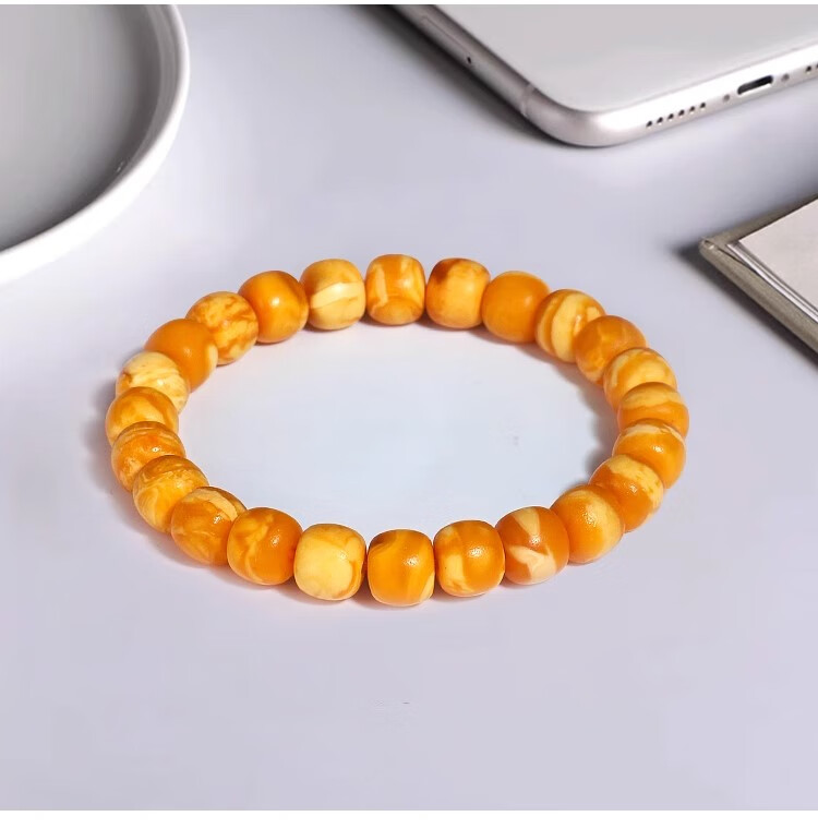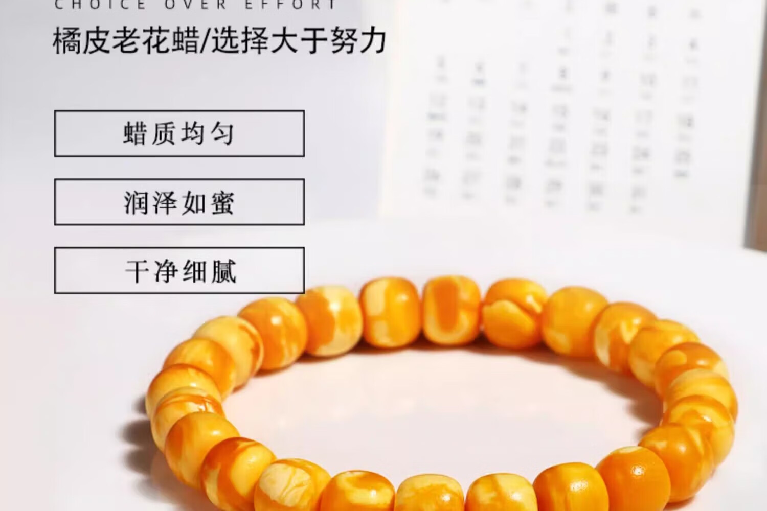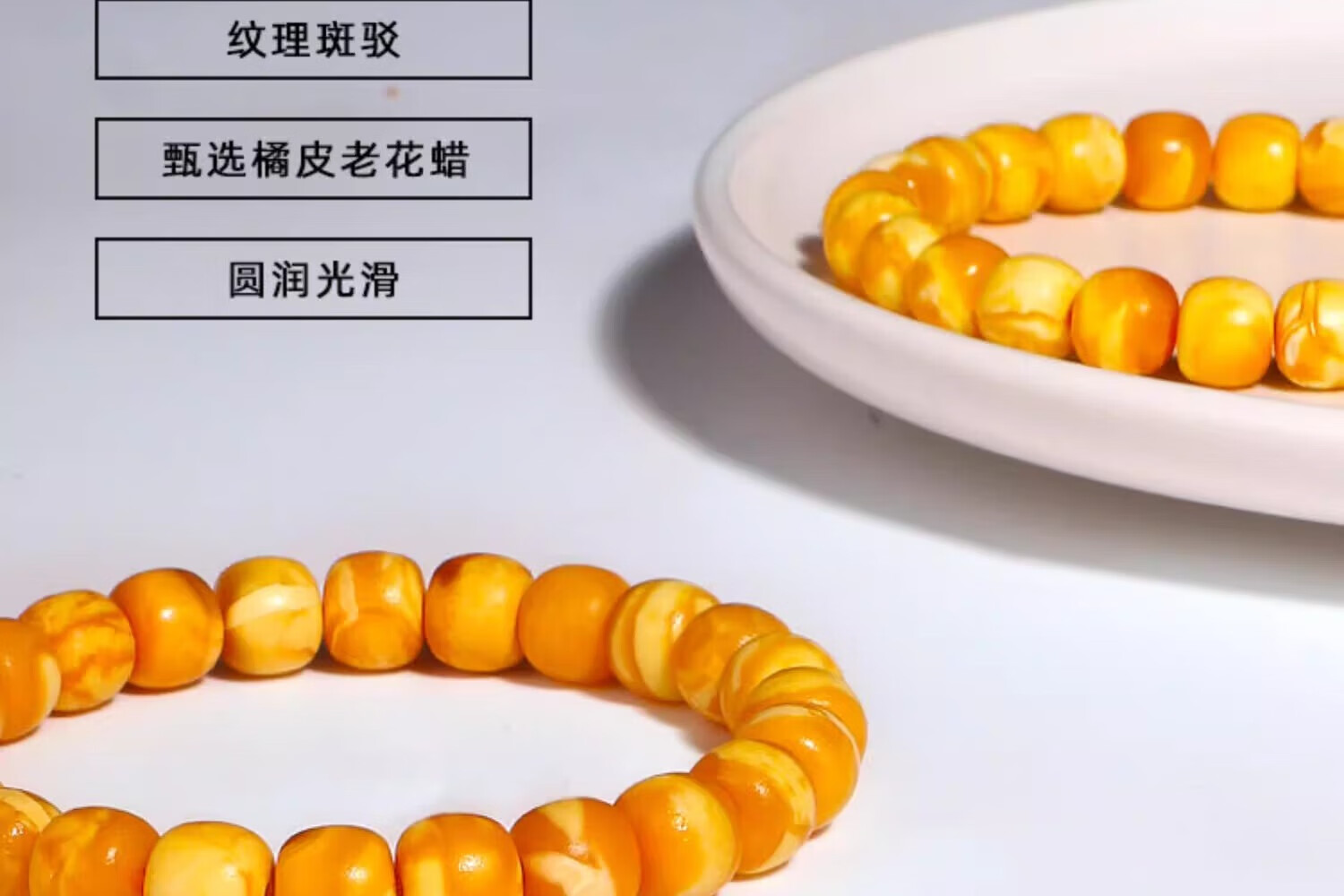 Jiuseyun Seiko Authentic Original Mineral Russian Material Orange Peel Old Beeswax White Flower Tiger Skin Pattern Old Style Single Circle Bracelet Buddha Beads Wenwan Bracelet Orange Peel Old Flower Wax Single Circle 7mm