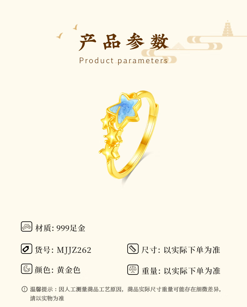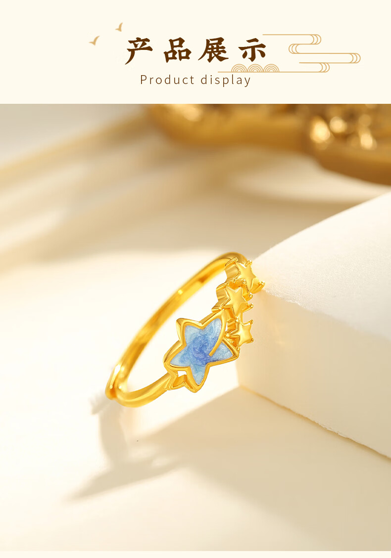 CHINA GOLD Gold Ring Women's Foot Gold Stars Ring Pure Gold Ring Birthday Christmas Eve Gift for Girlfriend Gold Weight Approximately 2.8g Selection Gift Box