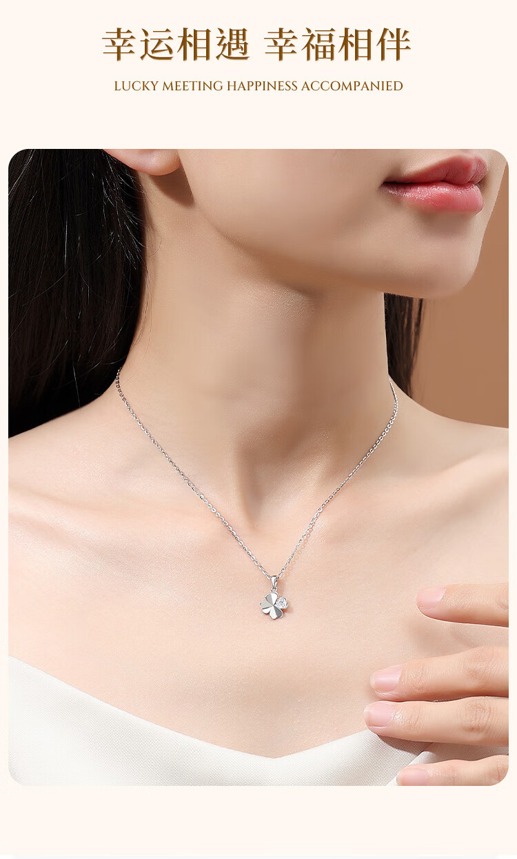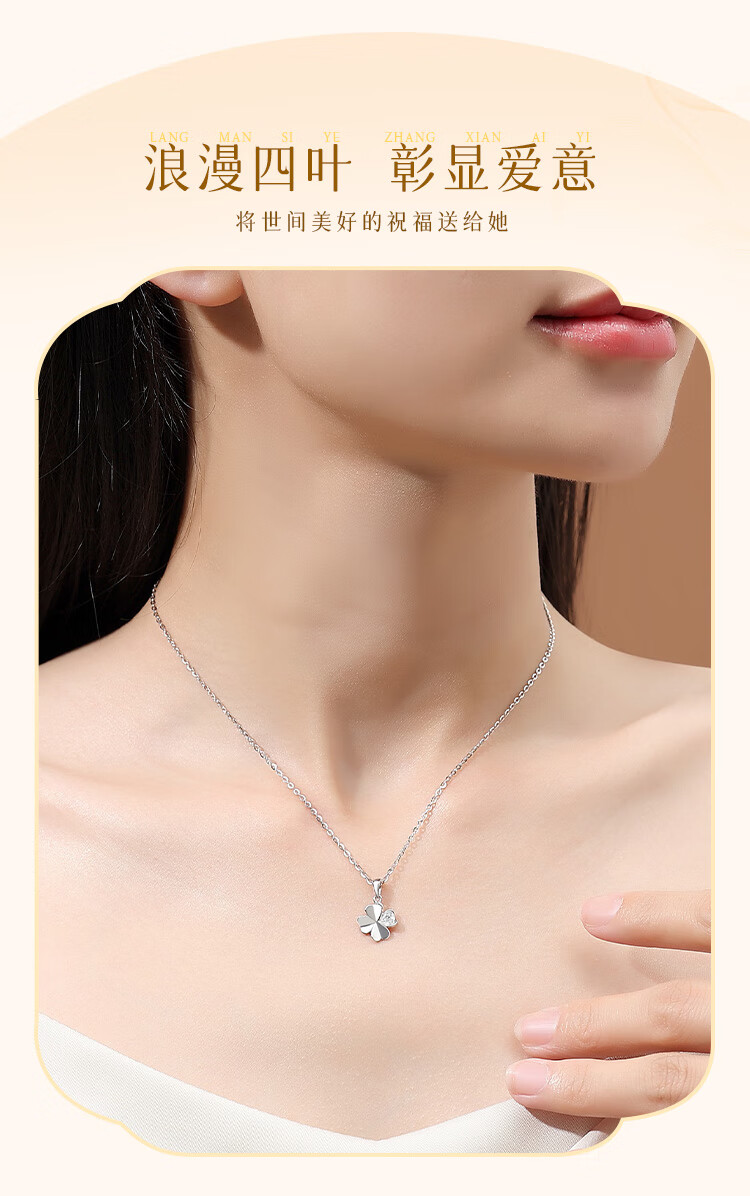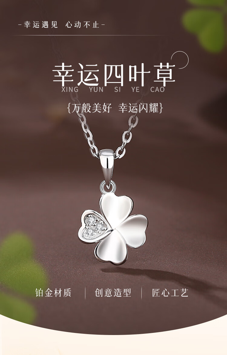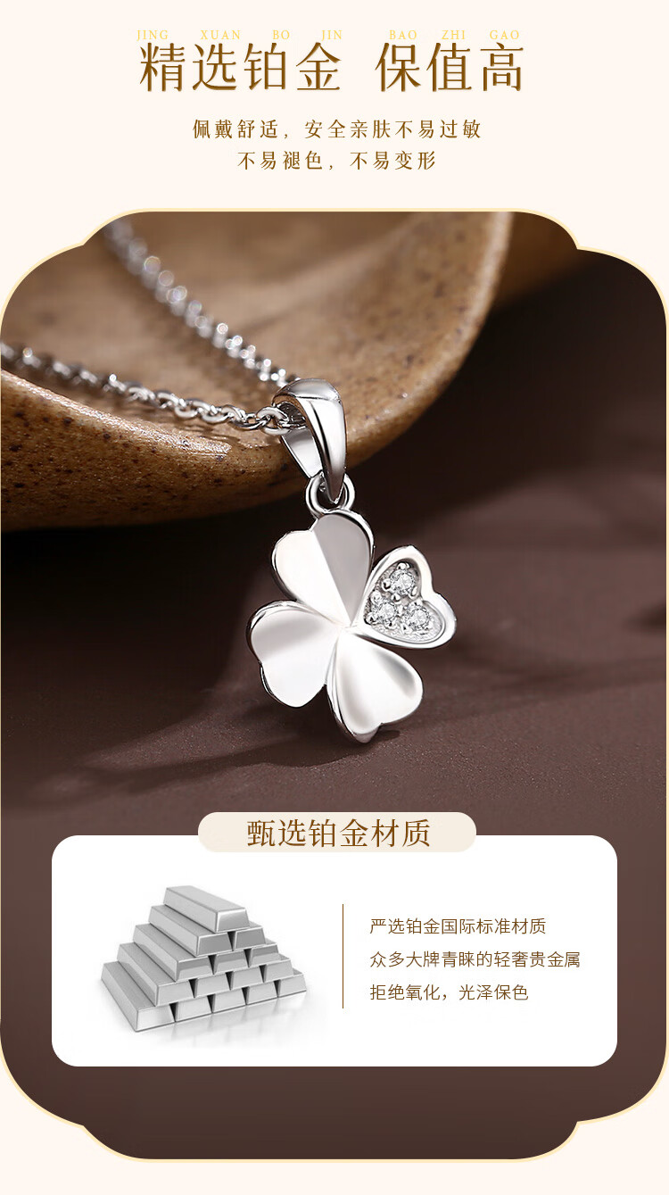 CHINA GOLD PT950 platinum necklace women's love four-leaf clover platinum pendant anniversary birthday gift for girlfriend and wife four-leaf clover platinum pendant free silver chain souvenir