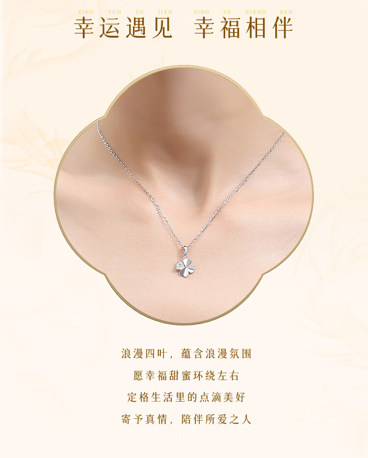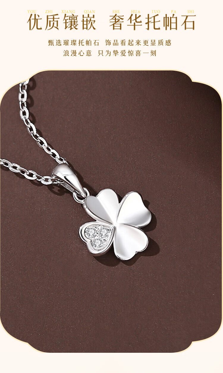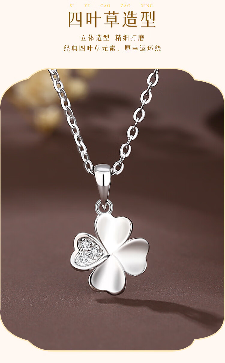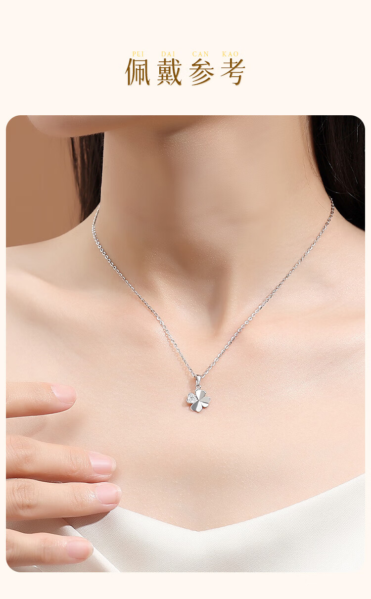 CHINA GOLD PT950 platinum necklace women's love four-leaf clover platinum pendant anniversary birthday gift for girlfriend and wife four-leaf clover platinum pendant free silver chain souvenir