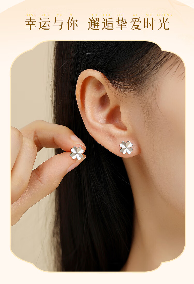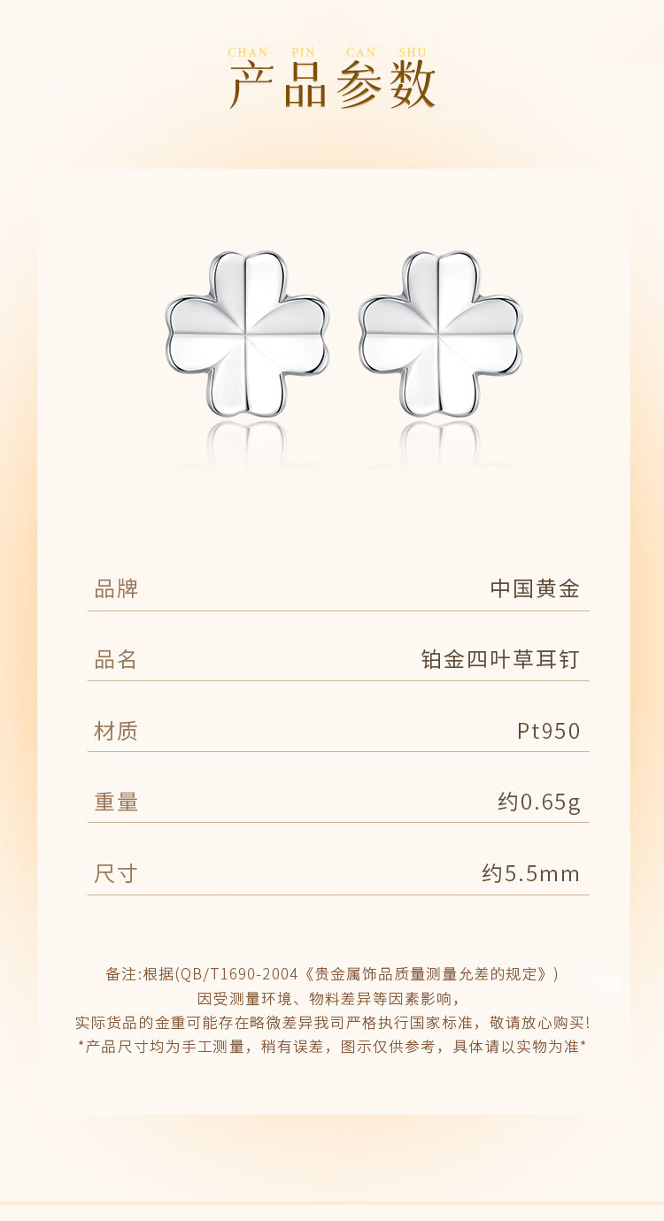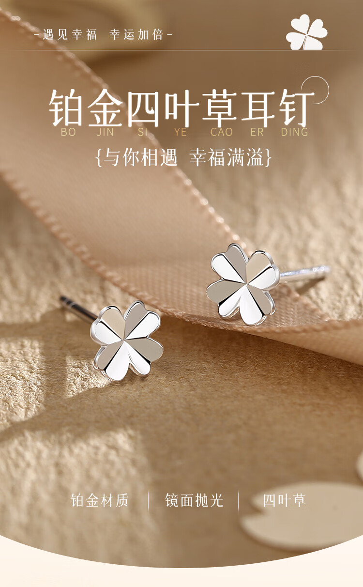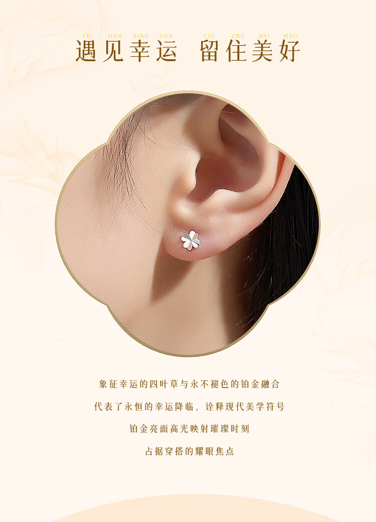 CHINA GOLD PT950 platinum earrings for women love four-leaf clover platinum earrings anniversary birthday gifts for girlfriends and wives love four-leaf clover platinum earrings souvenirs