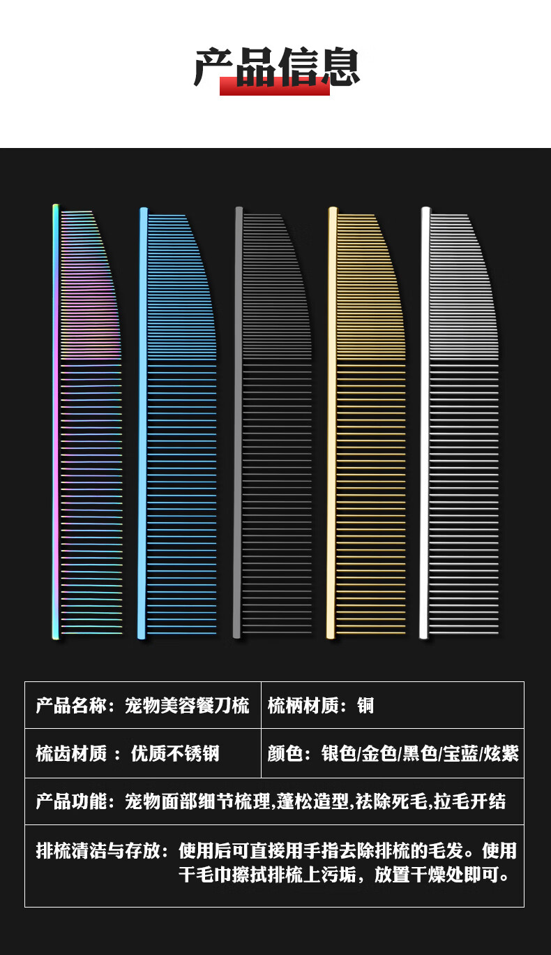 Sakura Mai Pet Grooming Table Knife Comb, Piano Comb, Unknotting, Knot Picking and Shaping Dual-Purpose Facial Comb, Color Changing Rainbow Style Table Knife Comb
