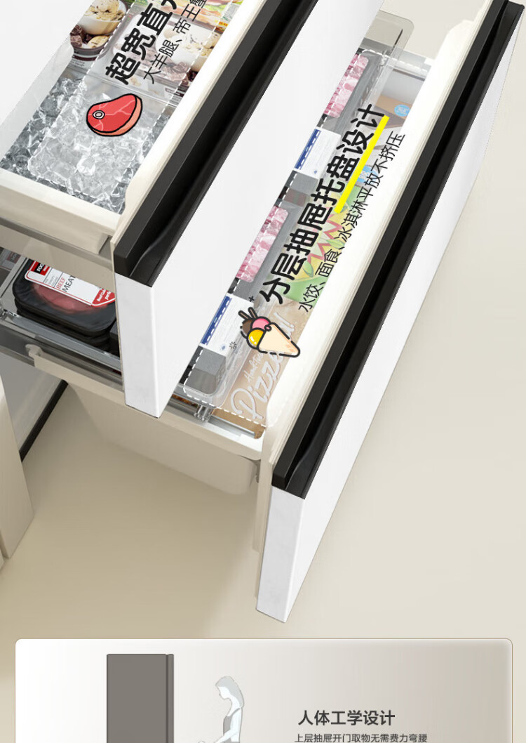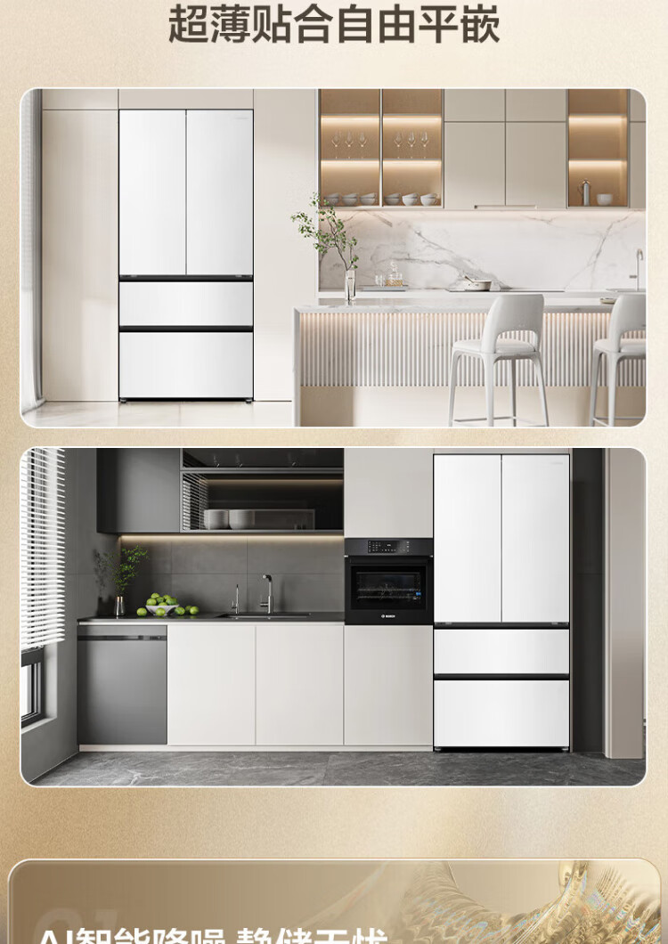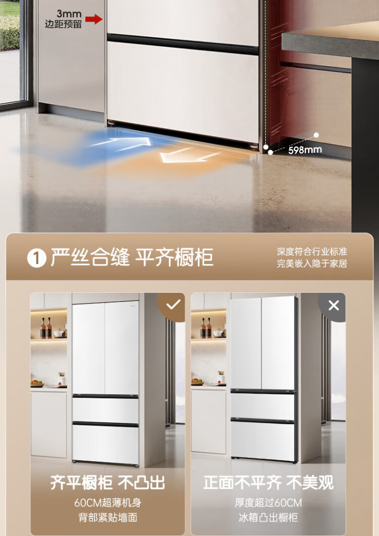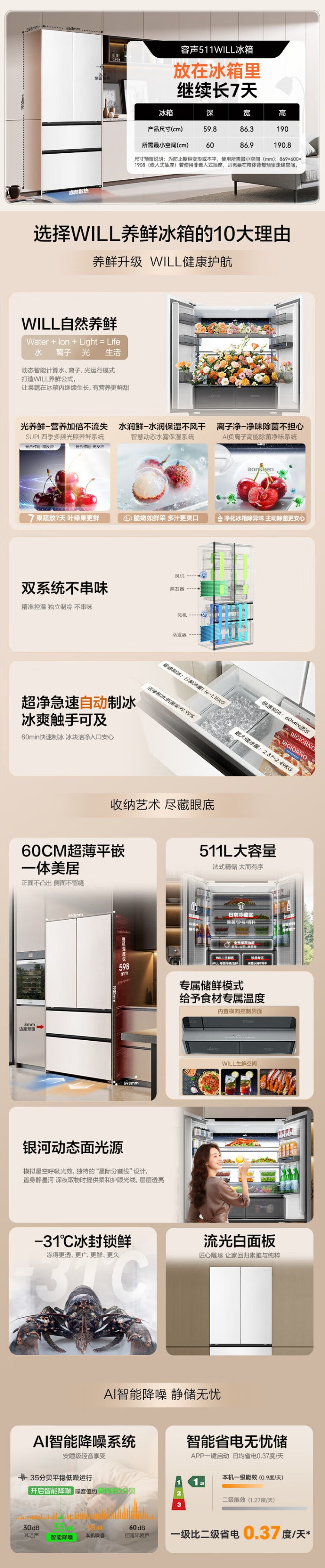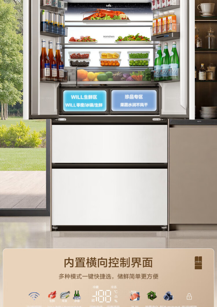 Rongsheng World Cup customized model 511WILL fresh dual system French multi-door four-door ultra-thin zero-embedded refrigerator home automatic ice making first-level energy efficiency national subsidy BCD-511W60FZNAD streamer white