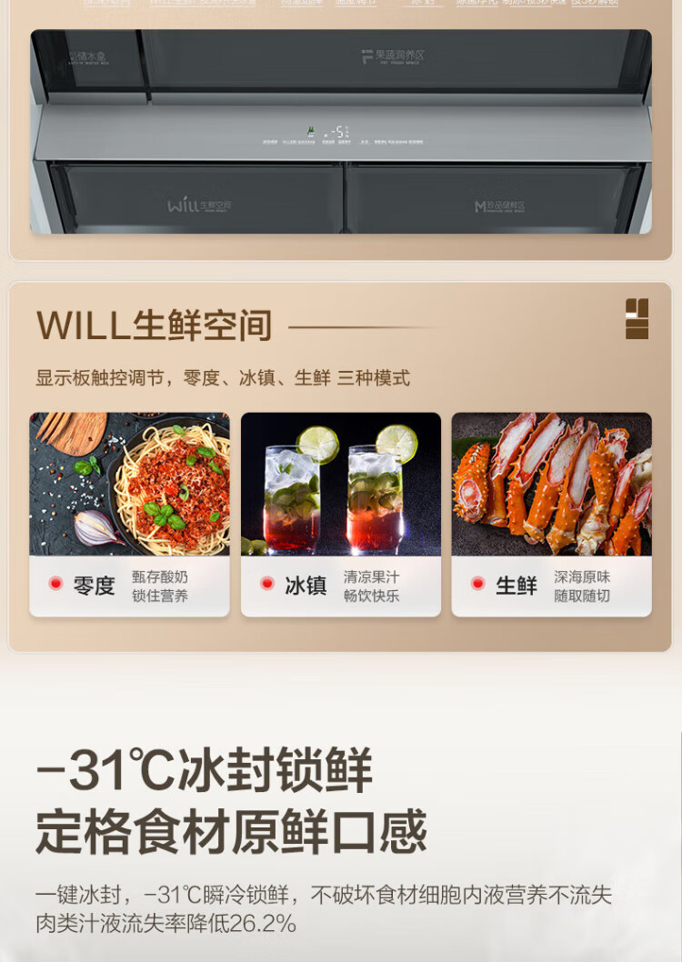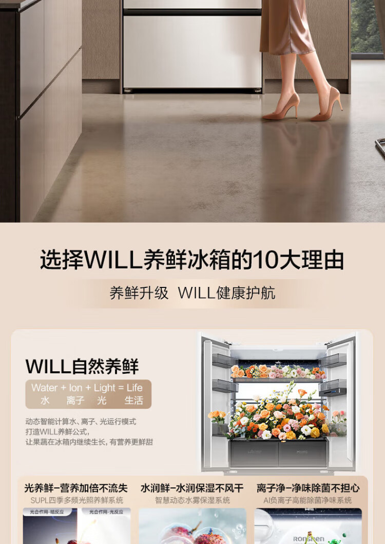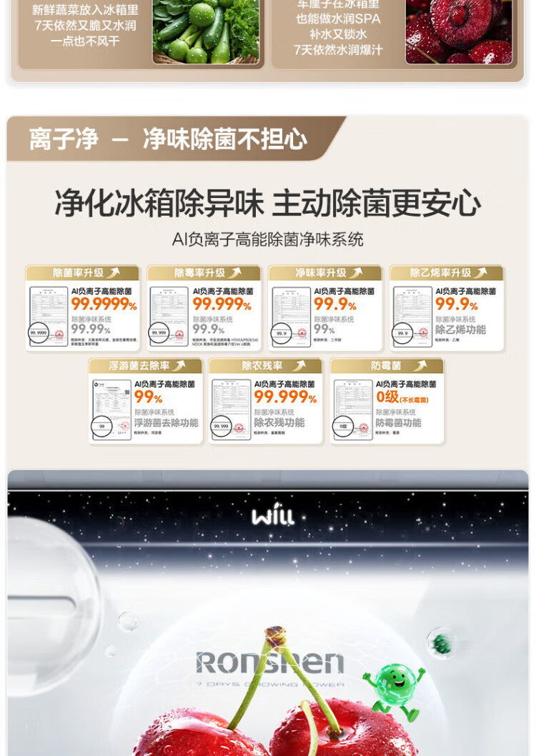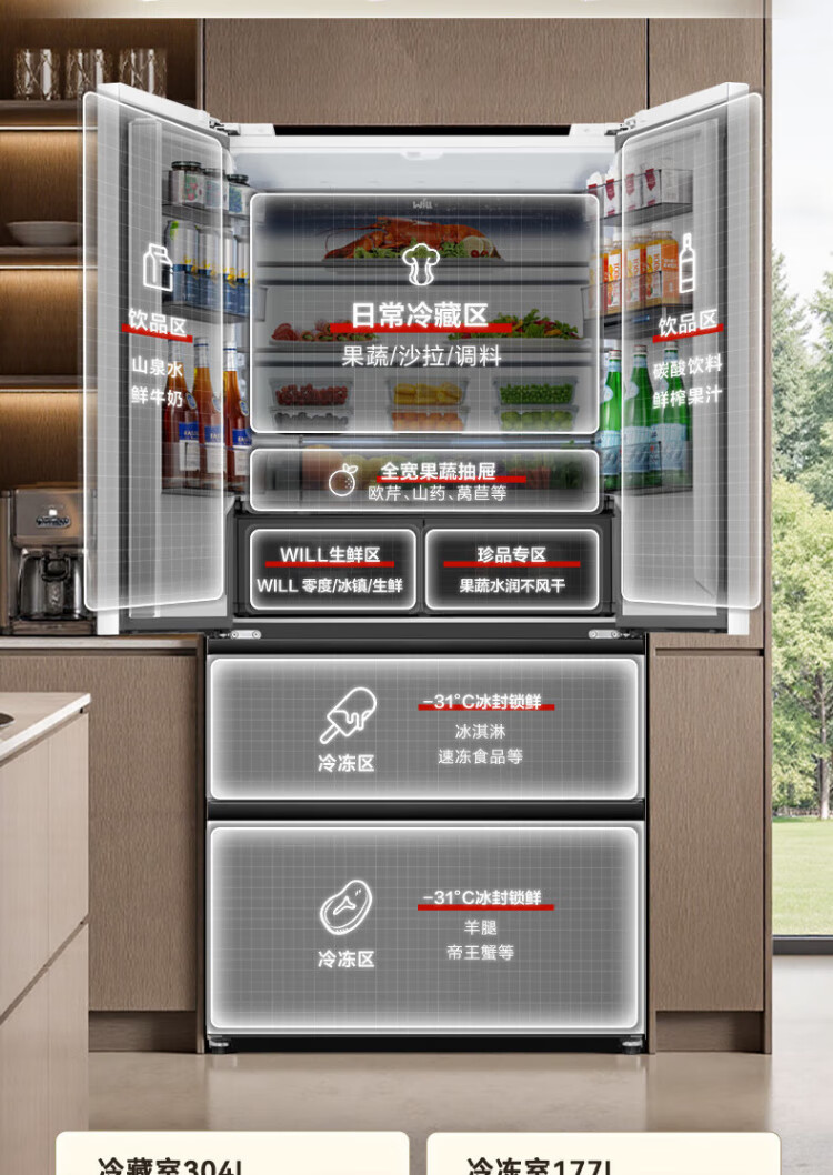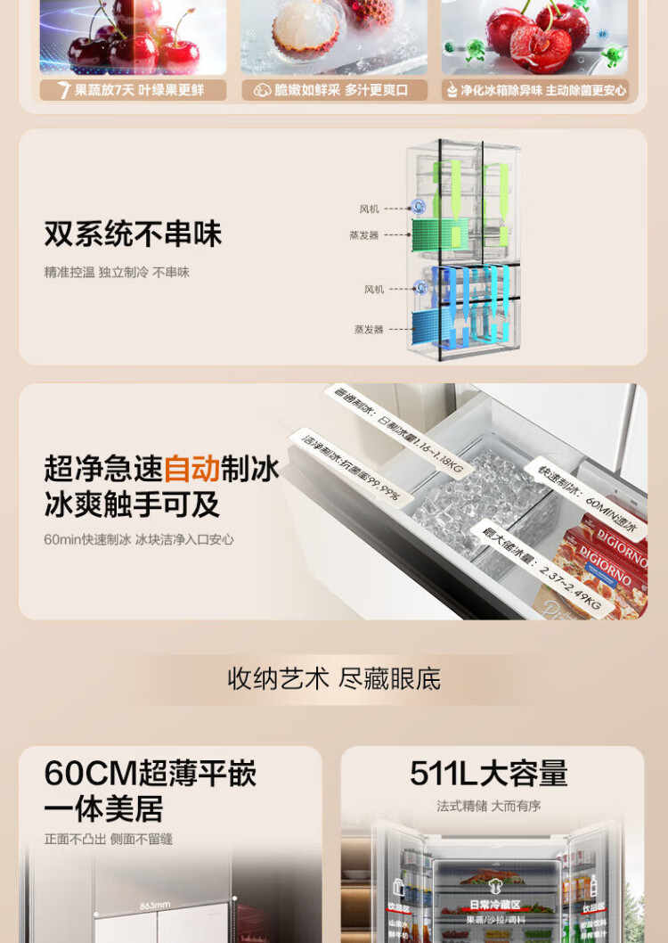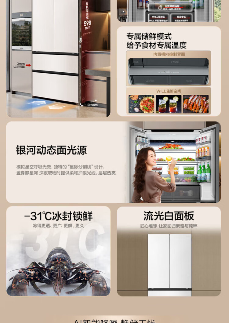 Rongsheng World Cup customized model 511WILL fresh dual system French multi-door four-door ultra-thin zero-embedded refrigerator home automatic ice making first-level energy efficiency national subsidy BCD-511W60FZNAD streamer white