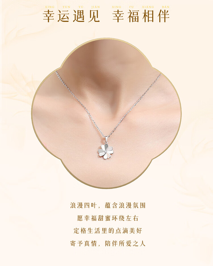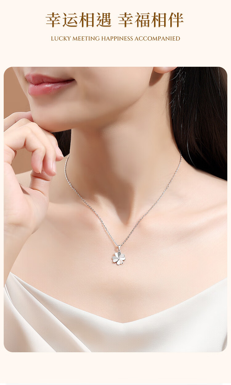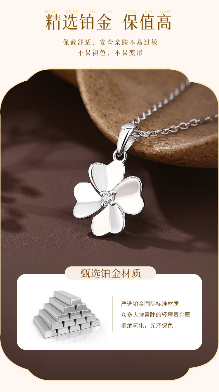 CHINA GOLD PT950 platinum necklace for women with diamonds, four-leaf clover platinum pendant, anniversary birthday gift for girlfriend and wife, four-leaf clover platinum pendant, free silver chain, souvenir