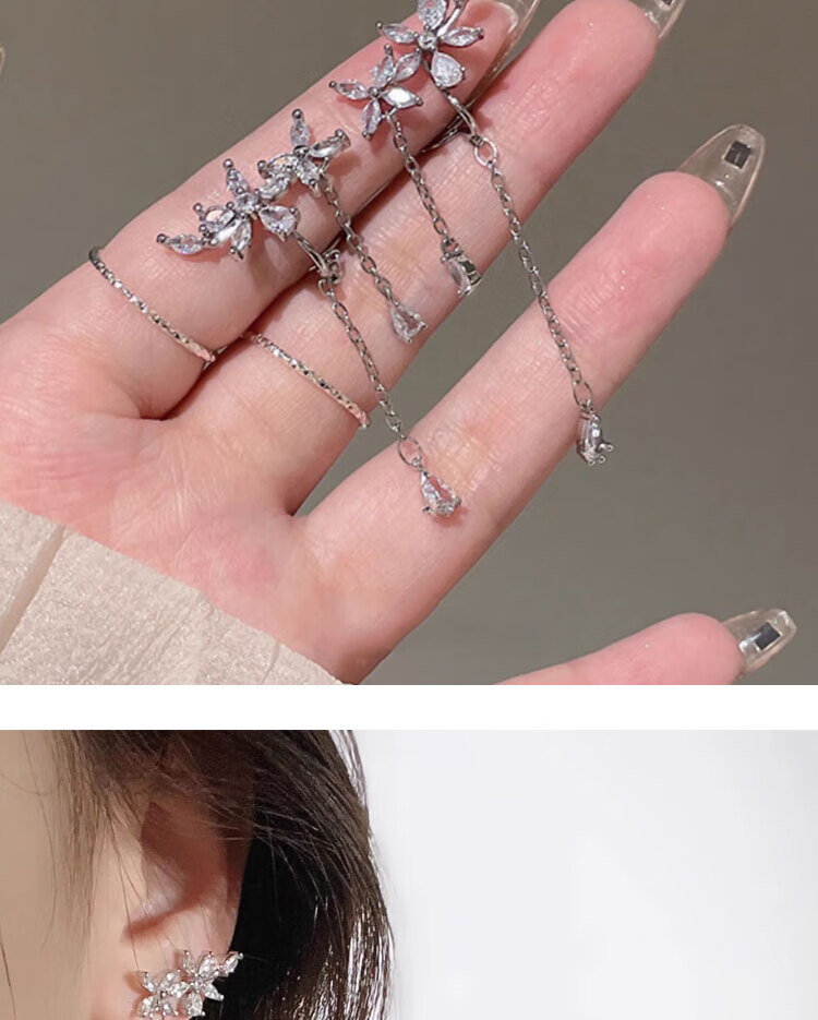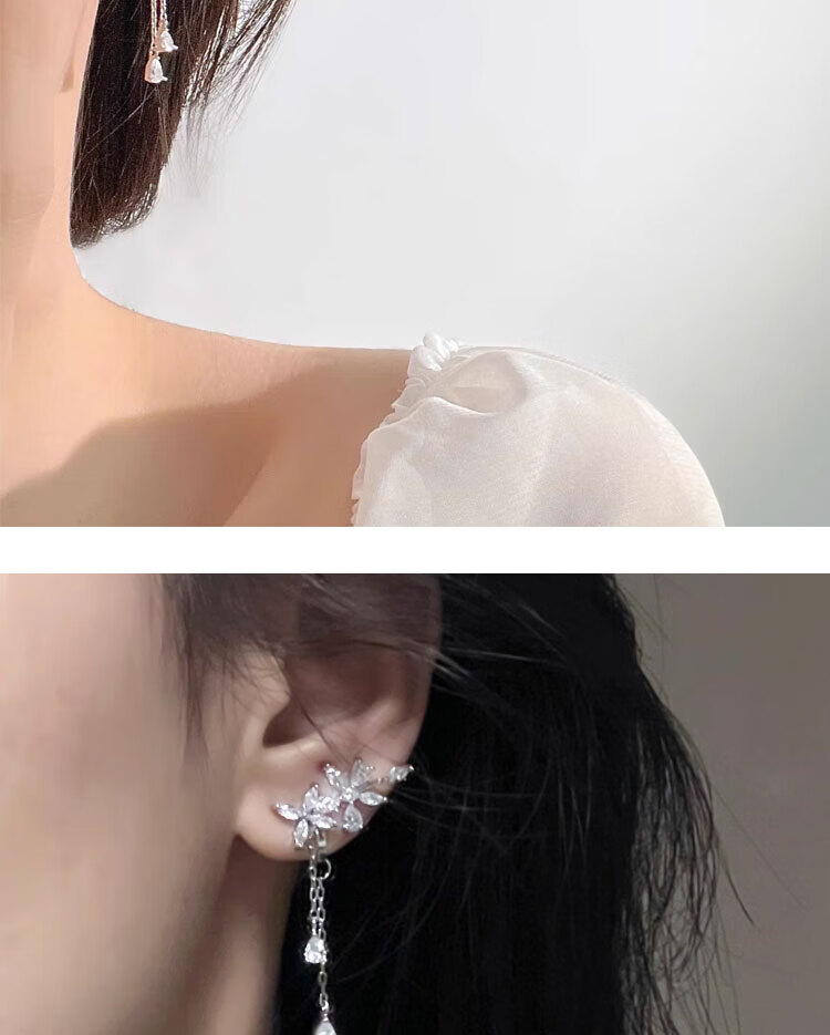 BMOI Old Phoenix 999 pure silver elf ear bone clip without pierced ears super fairy style tassel earrings temperament Gorgeous Dreamland ear clips pair