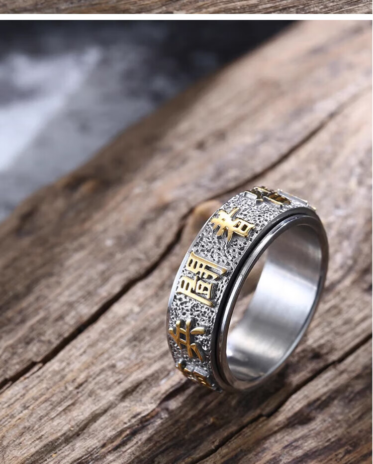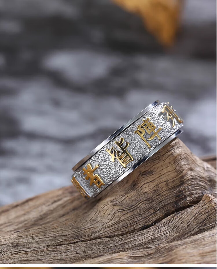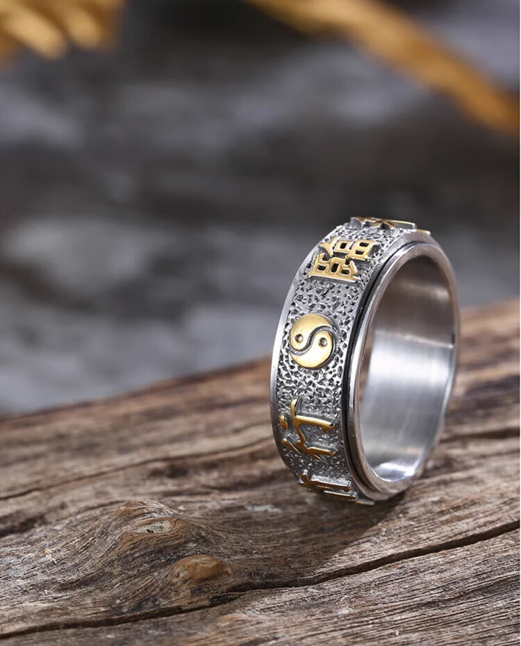 BMOI Old Phoenix 999 pure silver Tai Chi Chinese style nine-character mantra can rotate eight rings men's ring index finger
