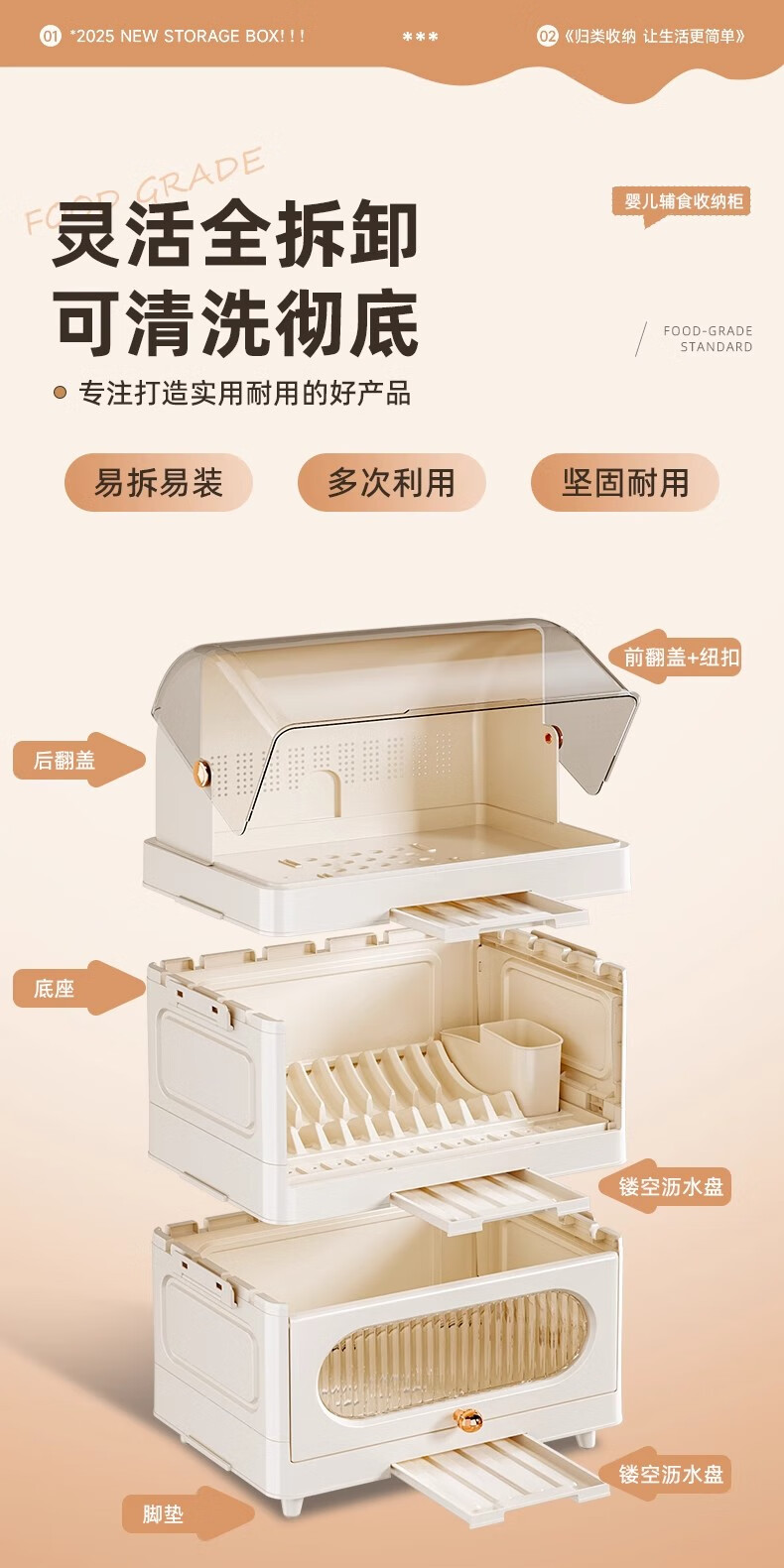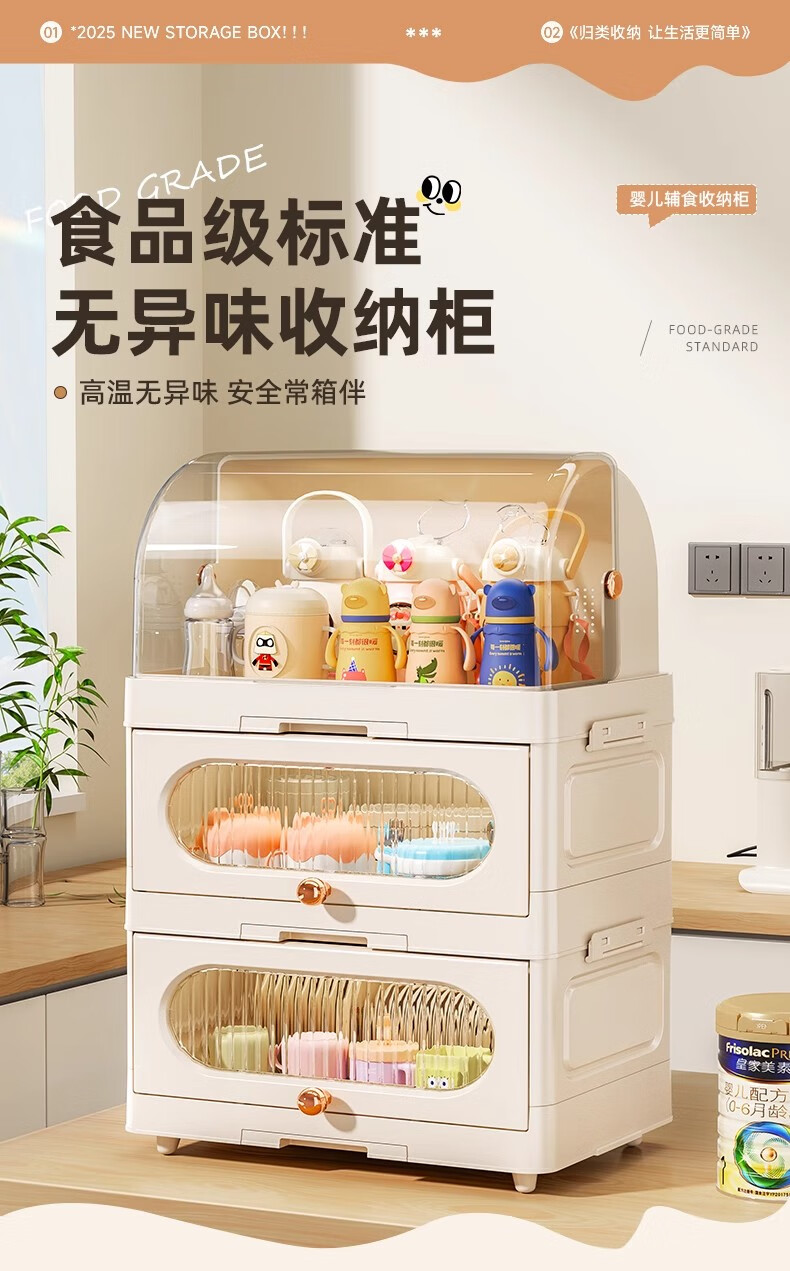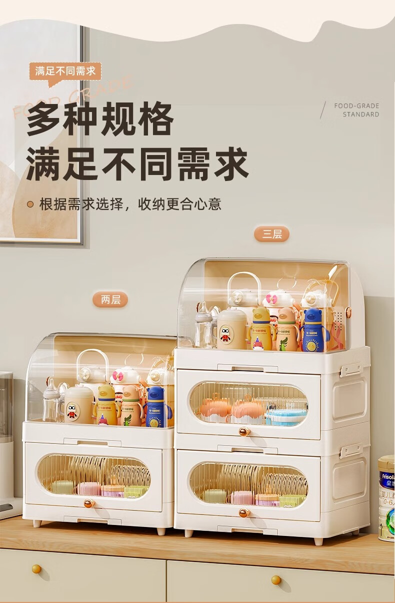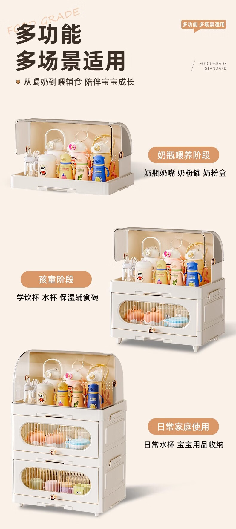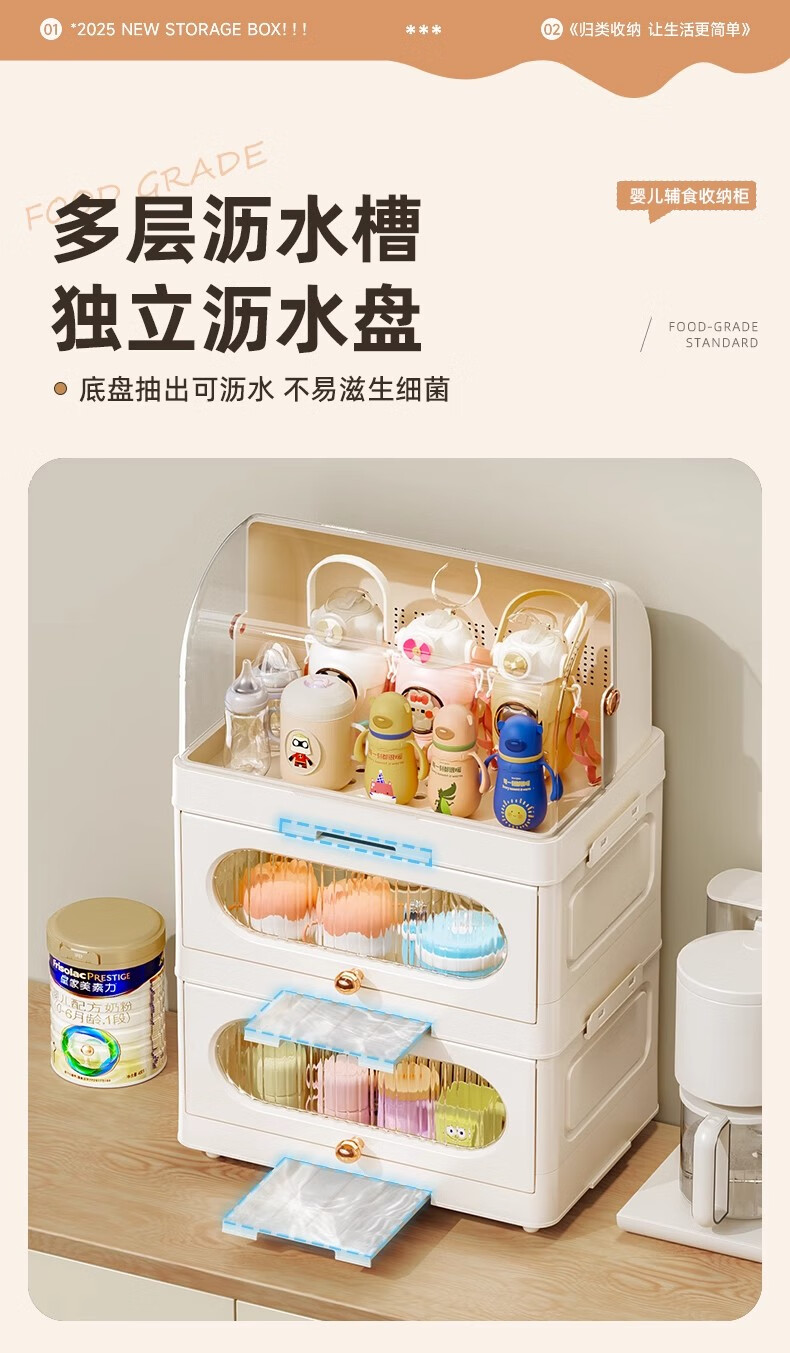 Nafenai Food Grade Bottle Storage Box Baby Food Complementary Tools Storage Box with Cover Drainage Rack for Drainage Custard - Three-layer Flip Cover Model Healthy Material/Ready to Use