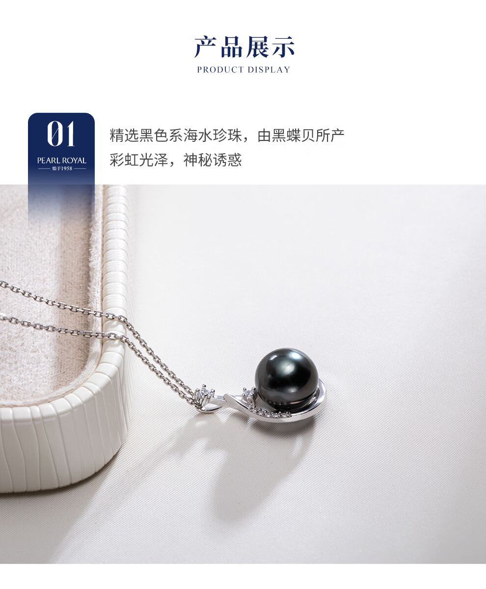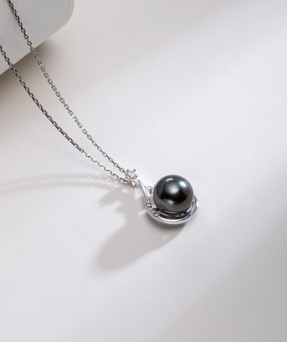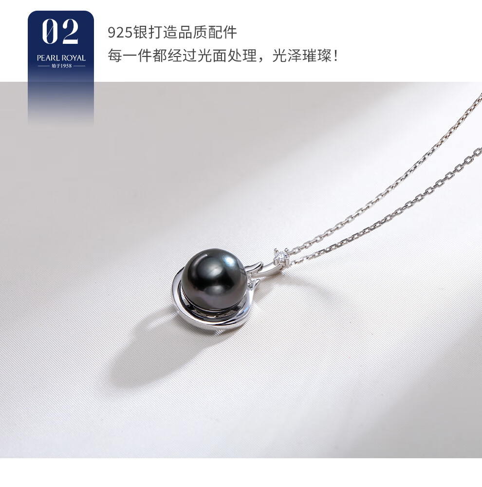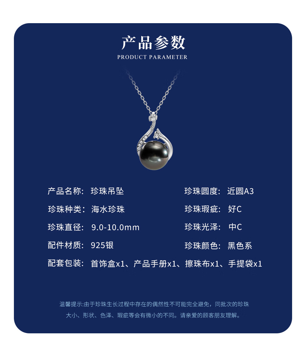 Nanzhu Palace Tahiti 925 silver seawater pearl pendant nearly round high-brightness young necklace female birthday gift for girlfriend 9.0-10.0mm 925 silver seawater pearl pendant