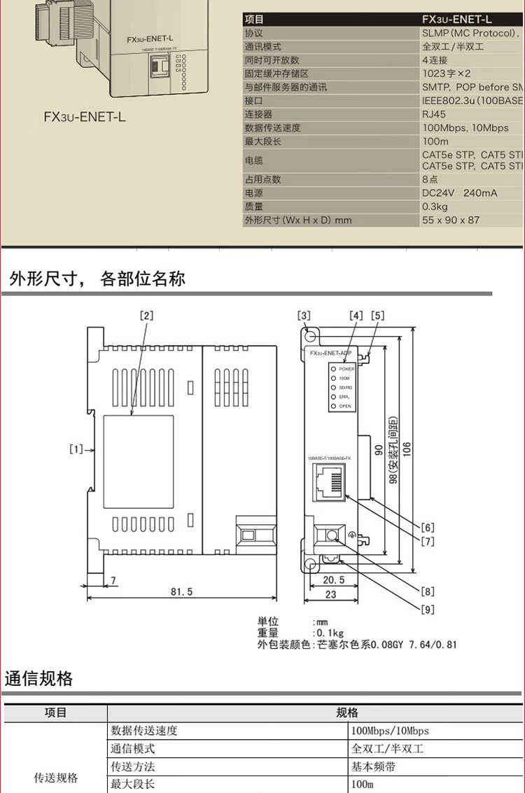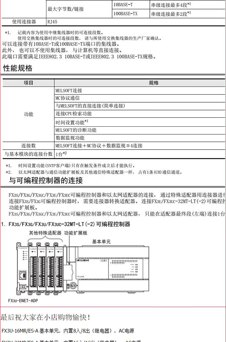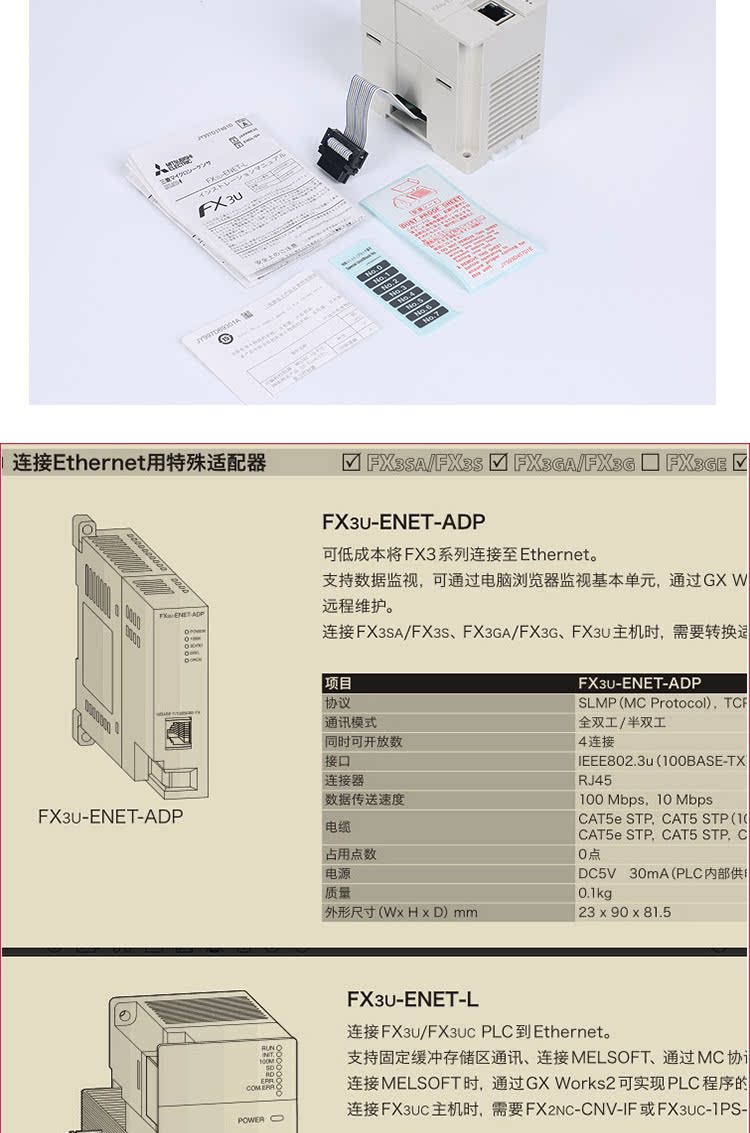 Mitsubishi PLC Internet Ethernet communication master-slave station module FX3U-ENET-LFX3U-ENET-ADP FX3U-ENET-L 13 VAT special ticket