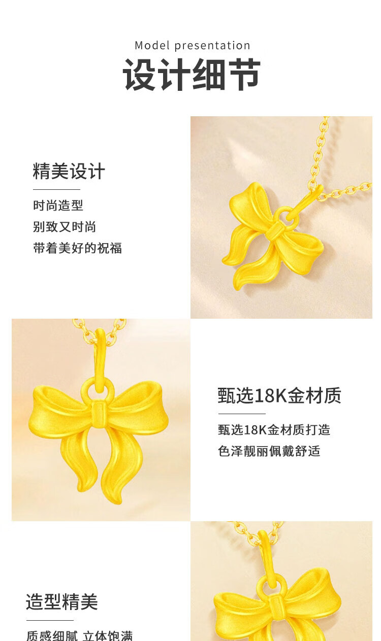 CHINA GOLD 18K gold fugitive princess necklace women's light luxury bow pendant Valentine's Day birthday gift for girlfriend and lover 18K bow pendant with S925 chain