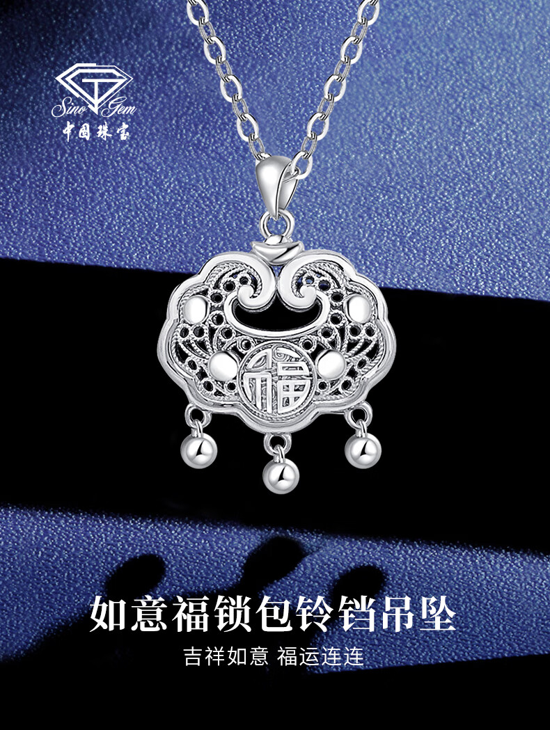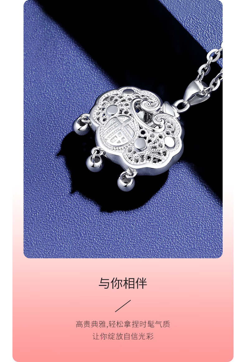 Chinese jewelry longevity safety lock platinum necklace platinum platinum pendant set chain Valentine's Day birthday gift for girlfriend and wife Ruyifu lock bag bell pendant gold weight about 7.5g