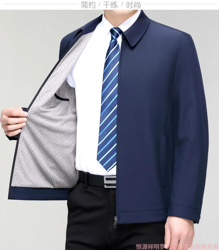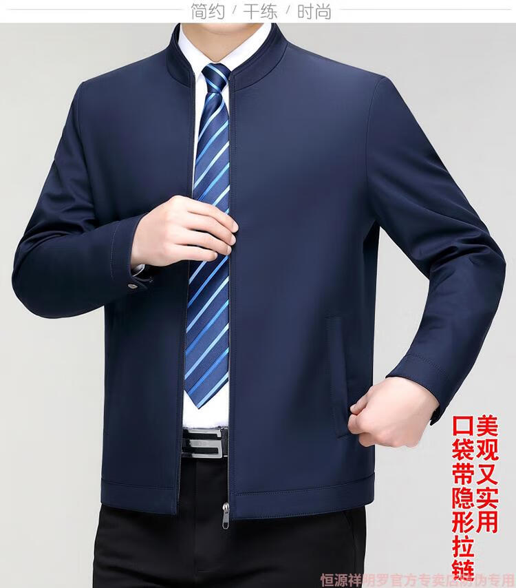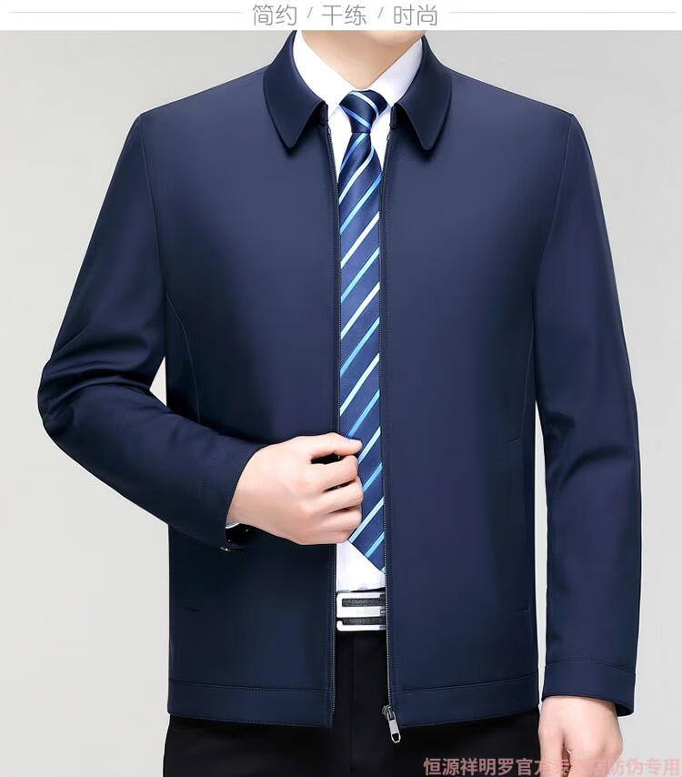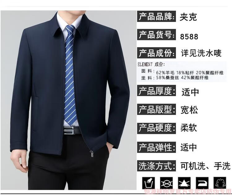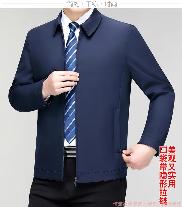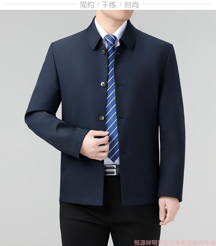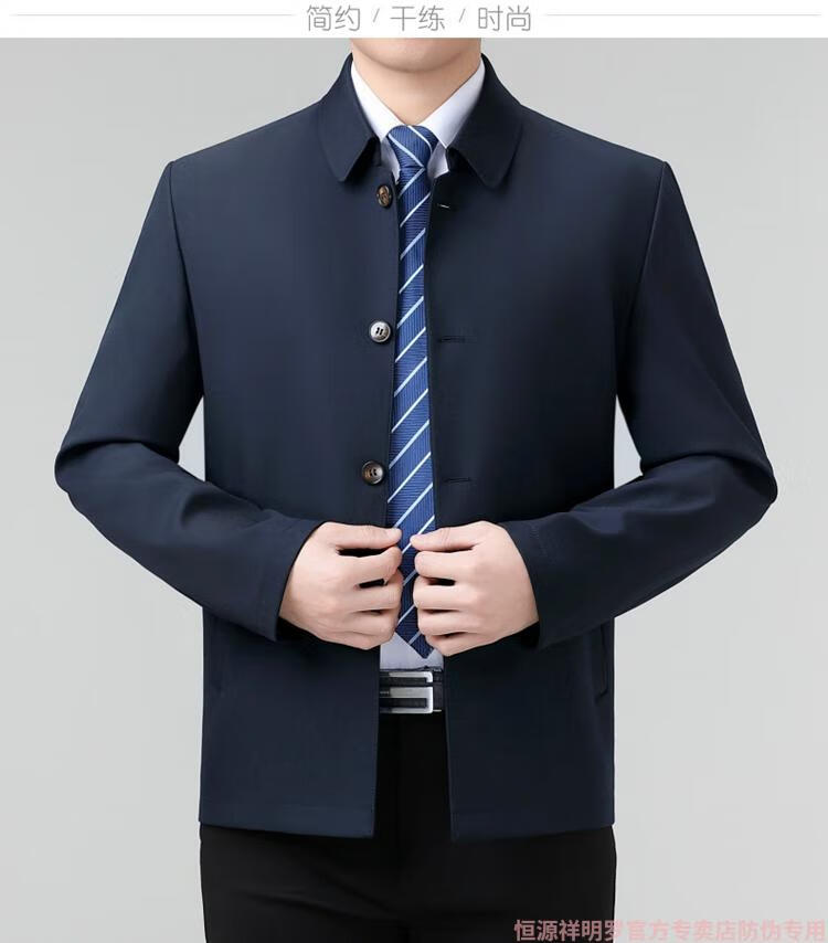 Hengyuanxiang Wool Jacket Men's Middle-aged Loose Administrative Civil Servant Dad Jacket Men's 2025 Spring and Autumn Navy - No-iron Anti-wrinkle 8588 (Outer Pocket No Zipper XL 180 Suitable for 130-150 Jin Jin equals 0.5 kg
