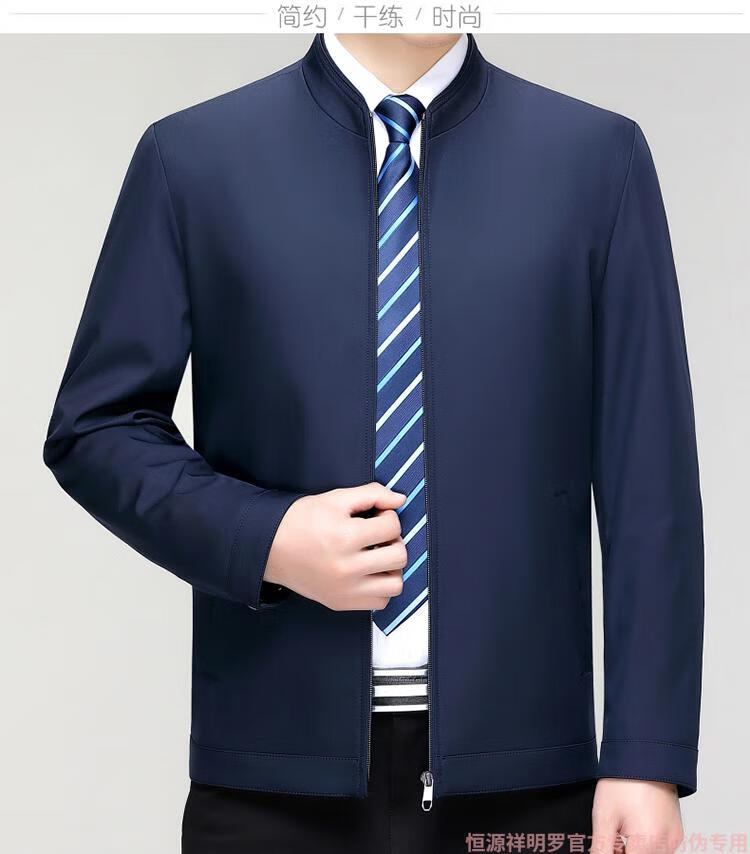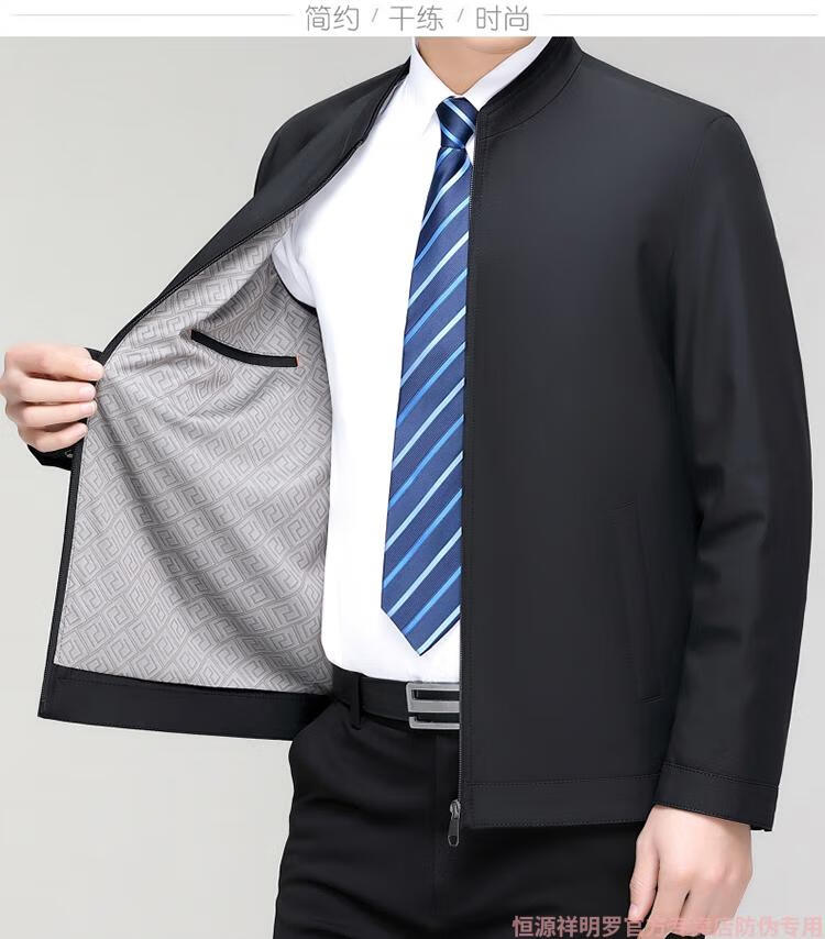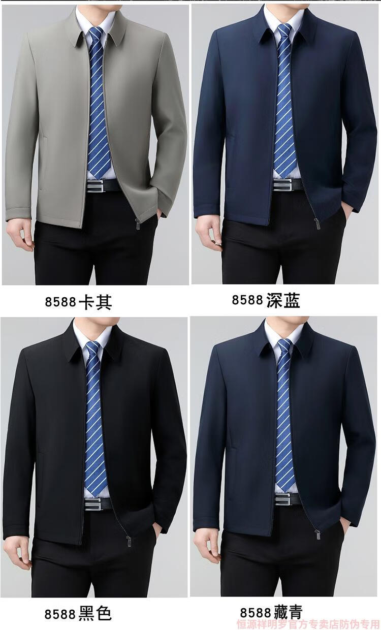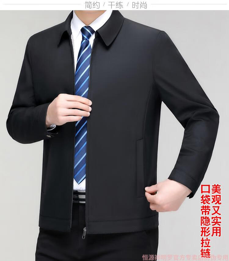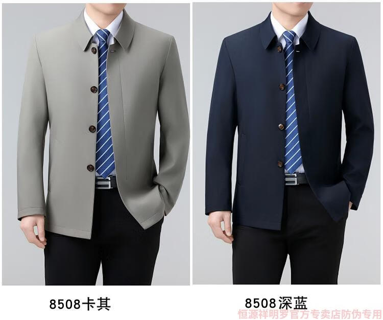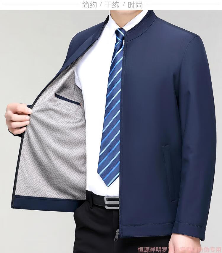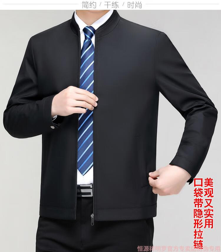 Hengyuanxiang Wool Jacket Men's Middle-aged Loose Administrative Civil Servant Dad Jacket Men's 2025 Spring and Autumn Navy - No-iron Anti-wrinkle 8588 (Outer Pocket No Zipper XL 180 Suitable for 130-150 Jin Jin equals 0.5 kg