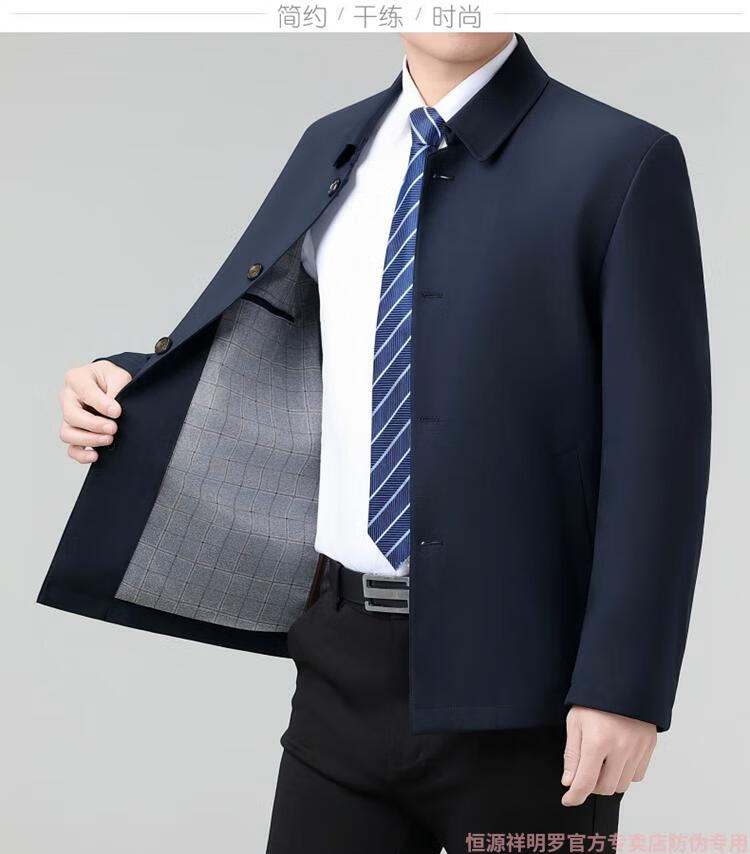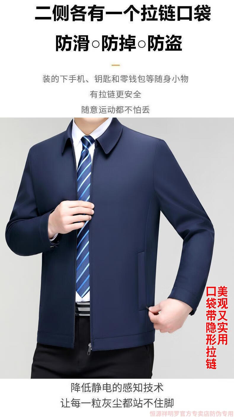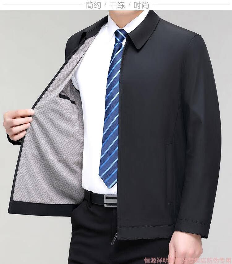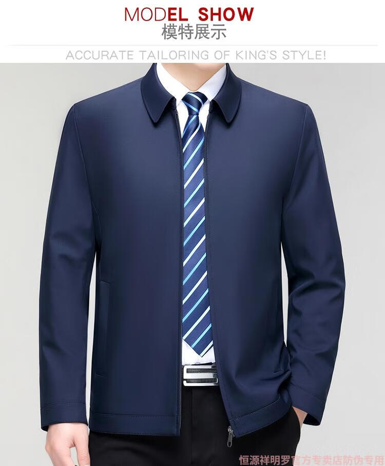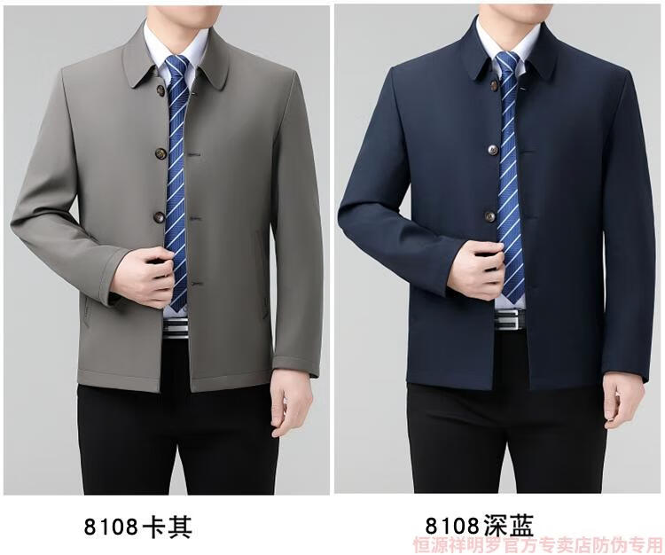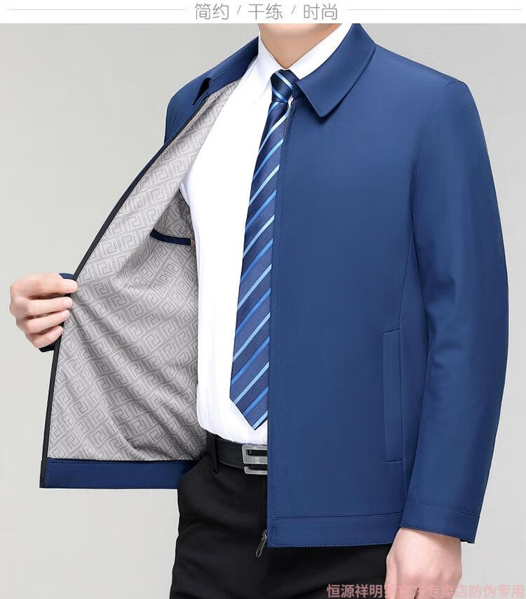 Hengyuanxiang Wool Jacket Men's Middle-aged Loose Administrative Civil Servant Dad Jacket Men's 2025 Spring and Autumn Navy - No-iron Anti-wrinkle 8588 (Outer Pocket No Zipper XL 180 Suitable for 130-150 Jin Jin equals 0.5 kg