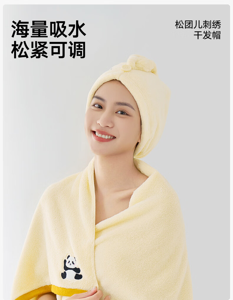 Songshan Miandian Mall's same style Song Tuan'er embroidered hair drying cap upgraded to thickened absorbent towel to wipe hair drying towel cheese yellow