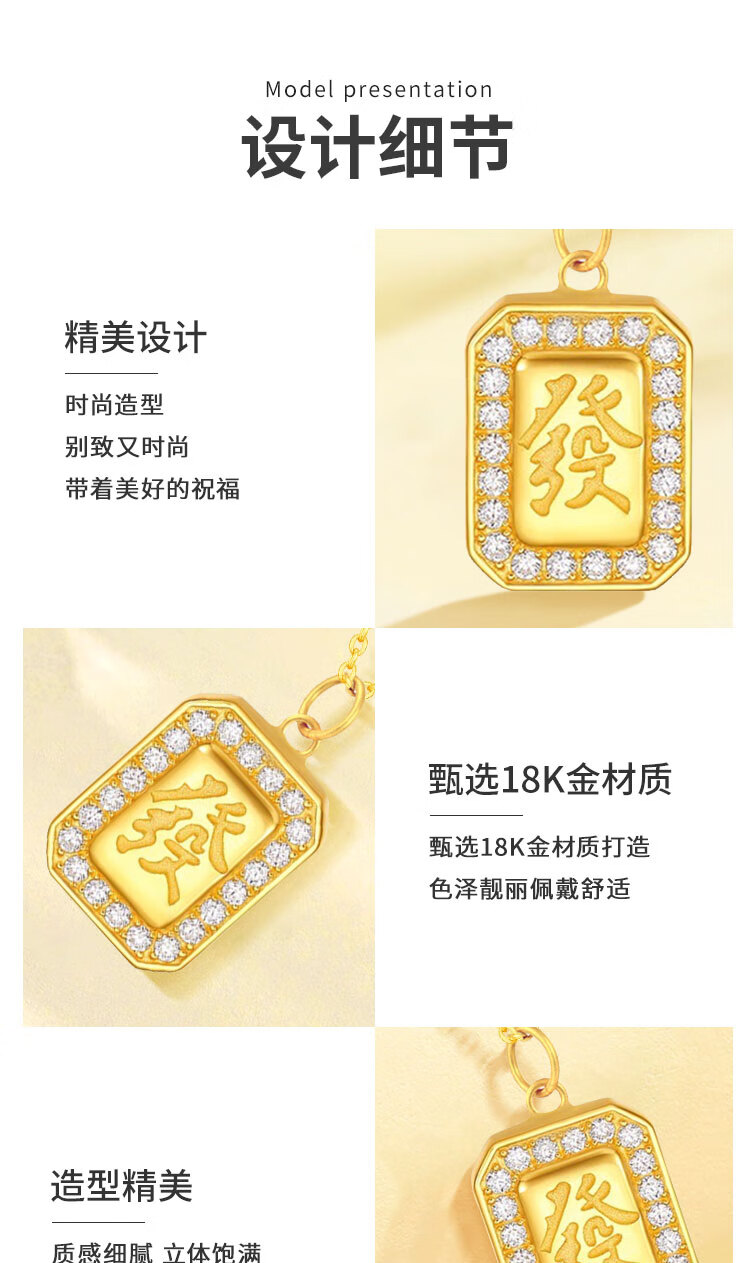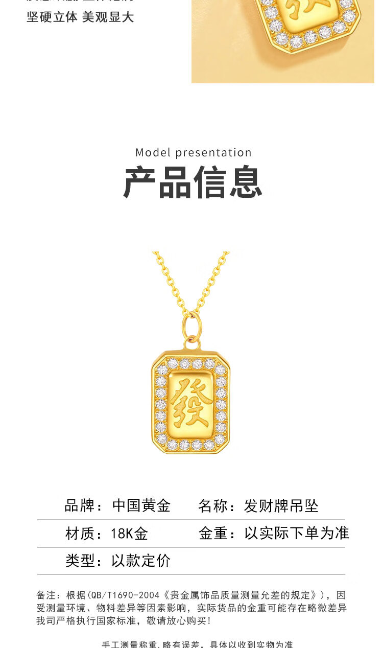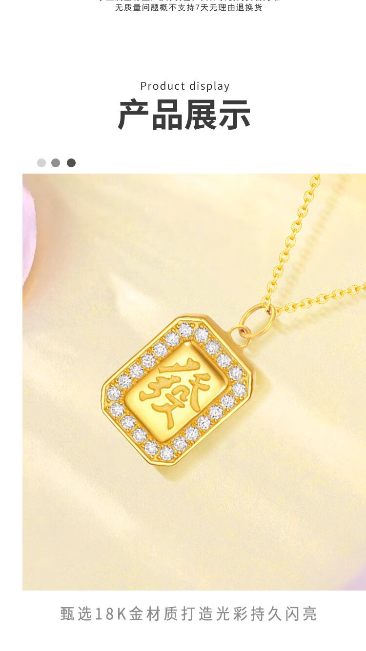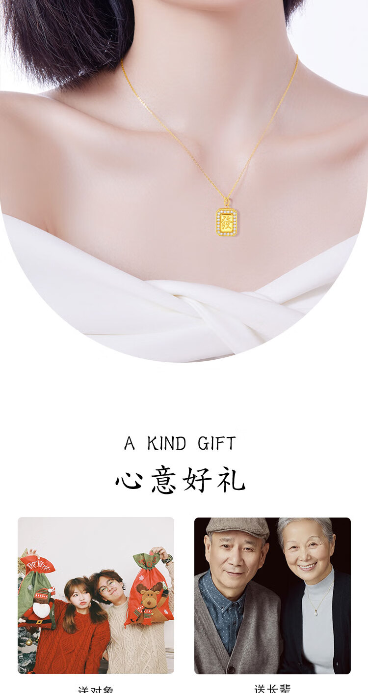 CHINA GOLD 18K gold necklace for women, light luxury and versatile, small sugar cube pendant for fortune, Valentine's Day birthday gift for girlfriend and wife 18K small sugar cube pendant, with S925 chain