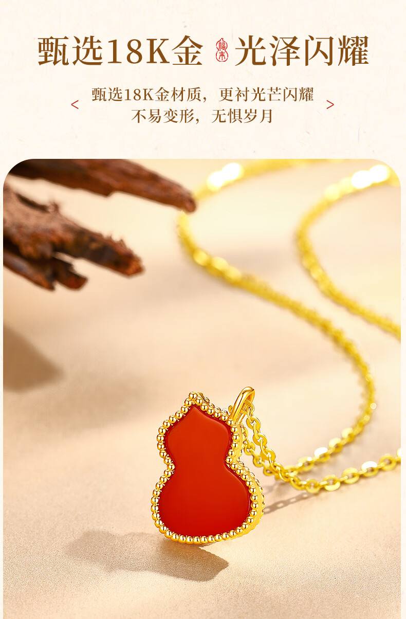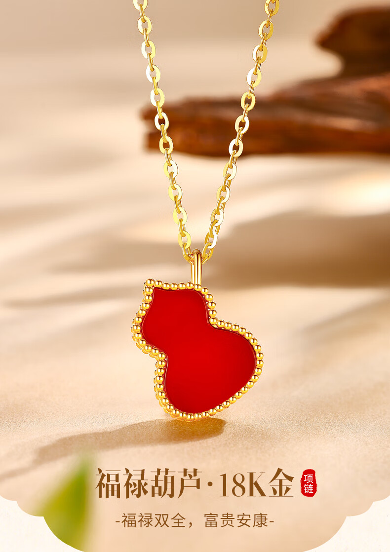 China Gold Fulu Gourd 18K Gold Necklace Women 2025 New Agate Pendant Birthday Gift for Girlfriend Wedding Anniversary 18K Gourd Red Agate Pendant Free Yellow Silver Chain