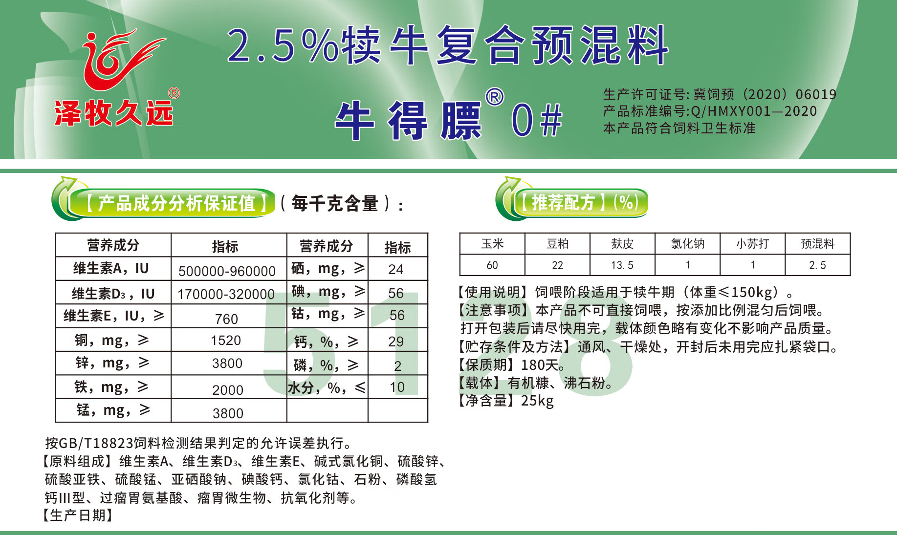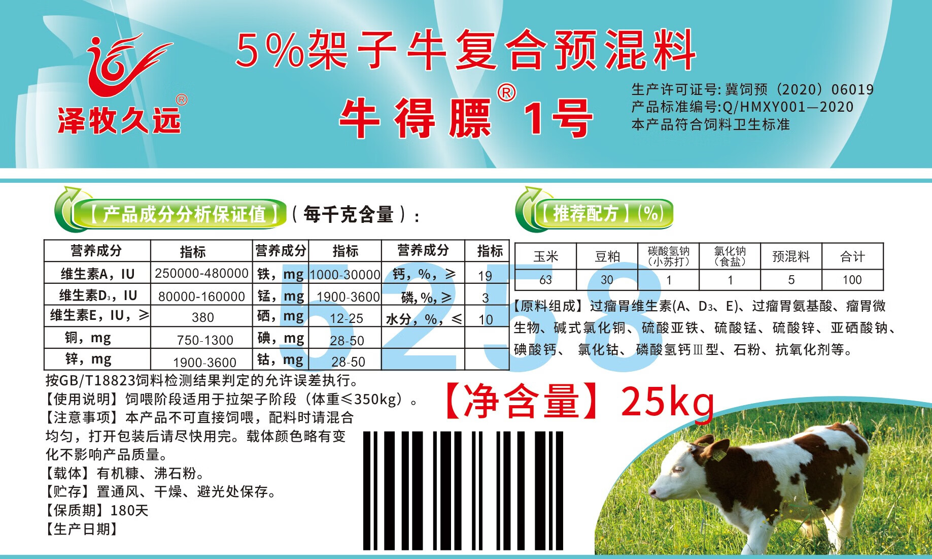 Zemu Jiuyuan Niu Defa No. 1 calf pull frame frame premix No. 0 calf open beef cattle feed 5% Niu Defa No. 1 package