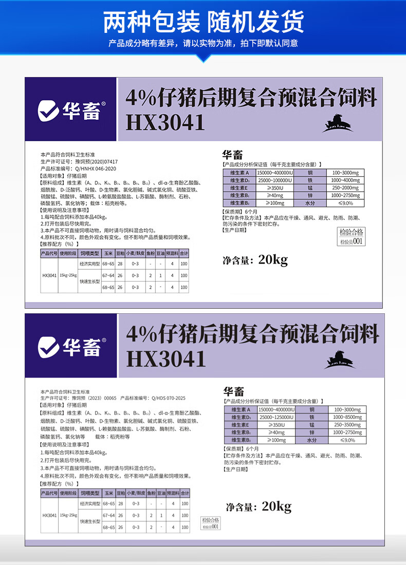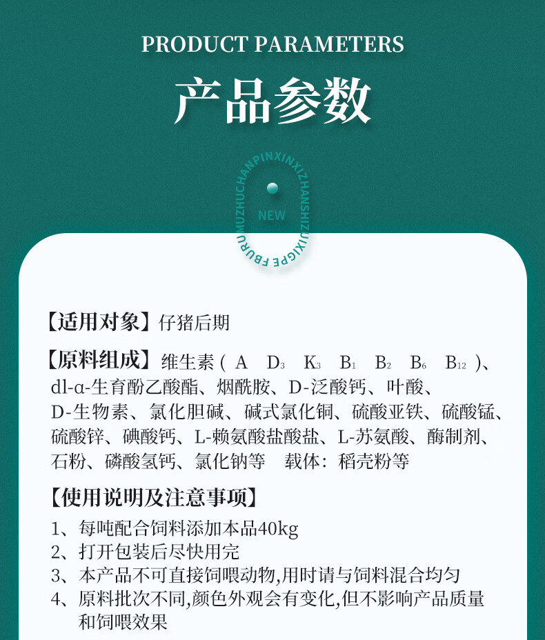 4% piglet premix for Chinese livestock pigs, piglet fattening pig weight gain, fattening and long skeleton feed additive 1 bag of piglet premix 20kg