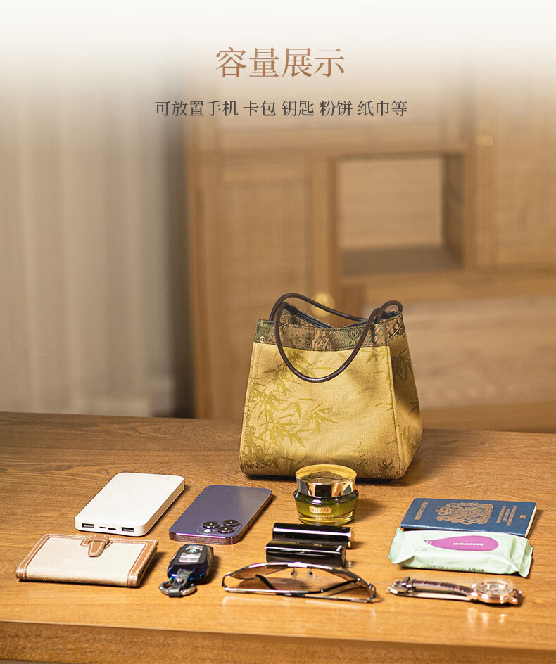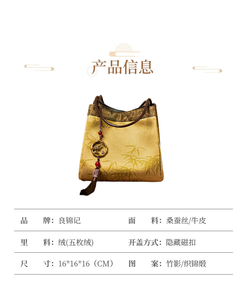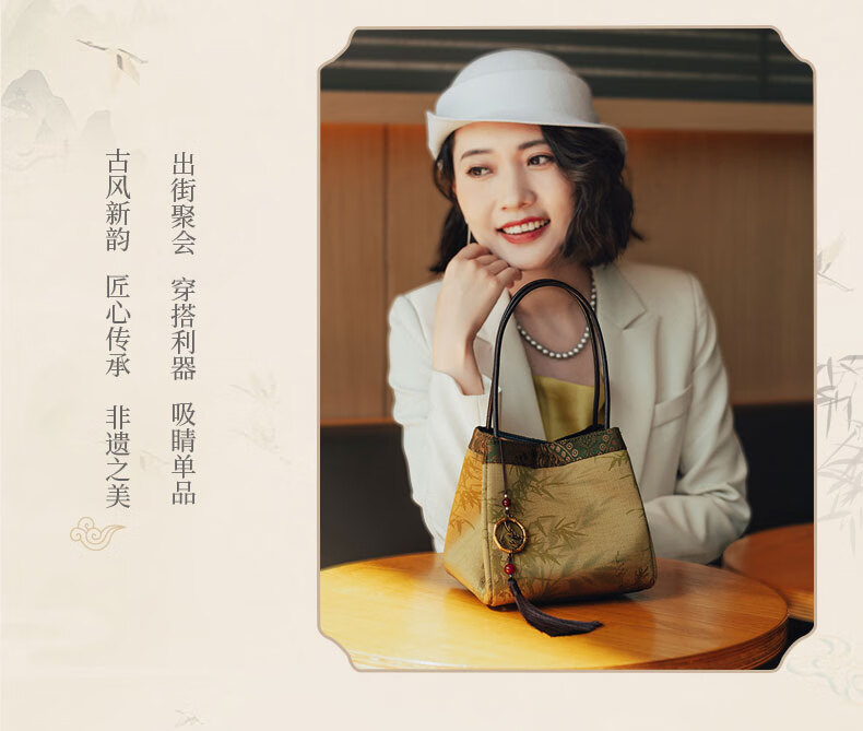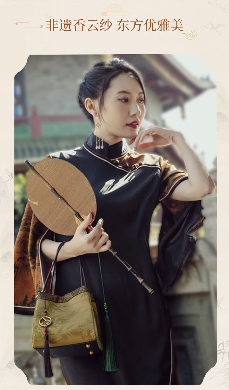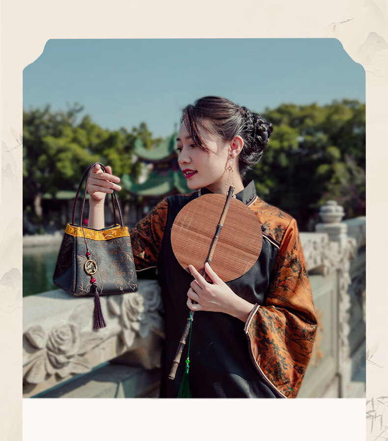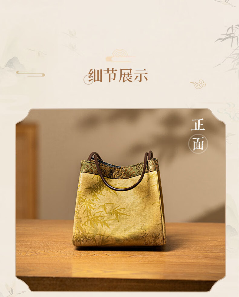 Liangjinji Intangible Cultural Heritage Xiangyunsha New Chinese Style Women's Bag National Style Embroidered Small Bag for Mother Mother's Day Gift Wrist Bag Jinxuan Bajiao-Song Jinshang Jiu Kai