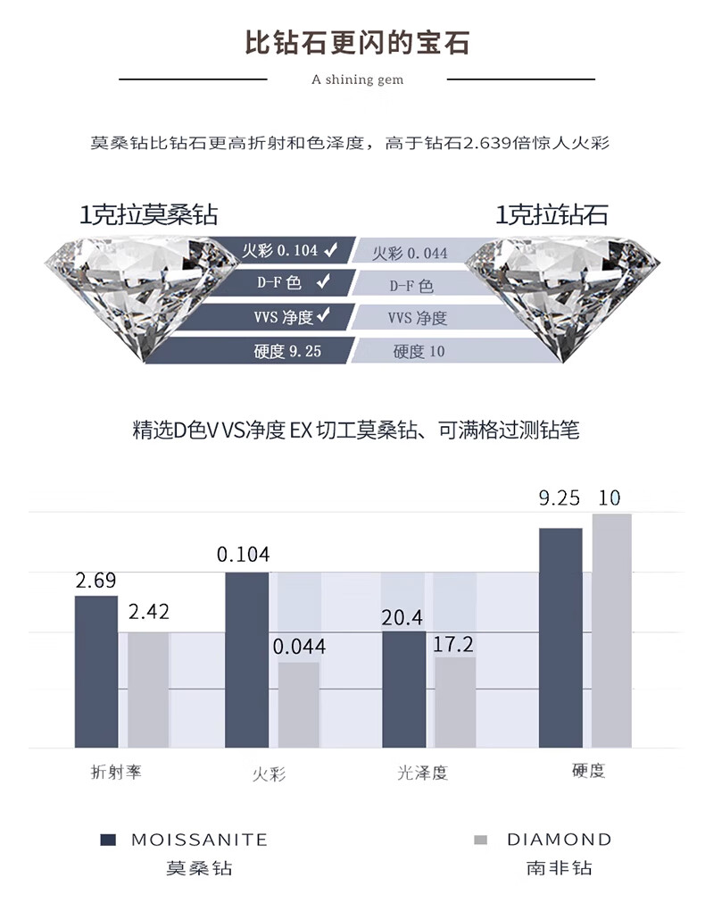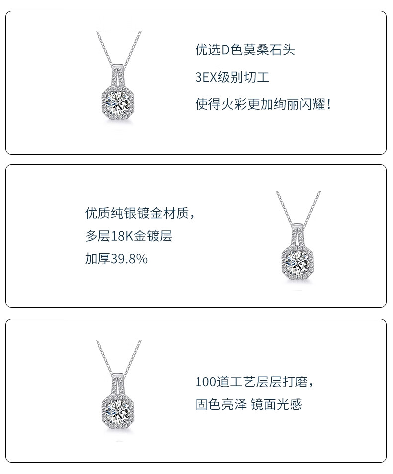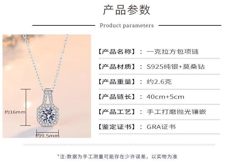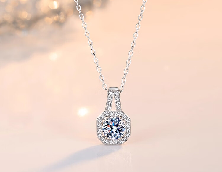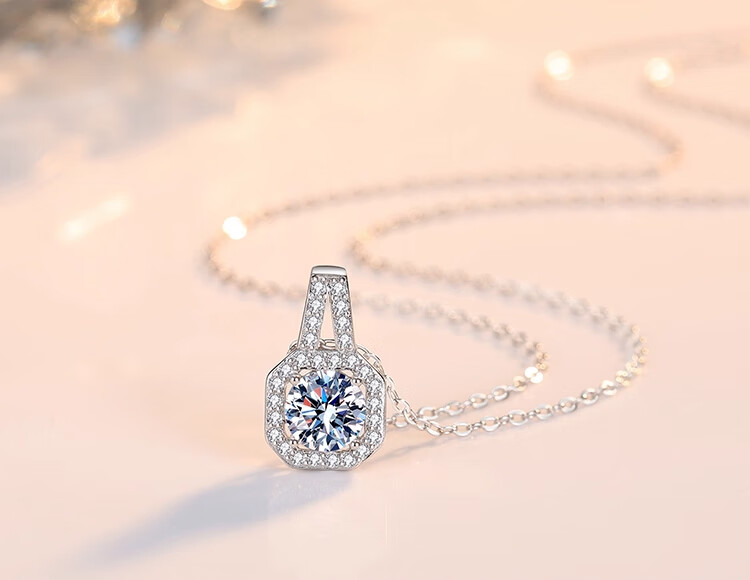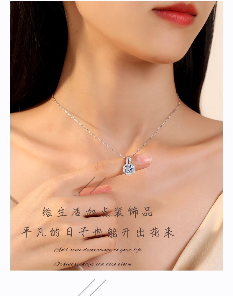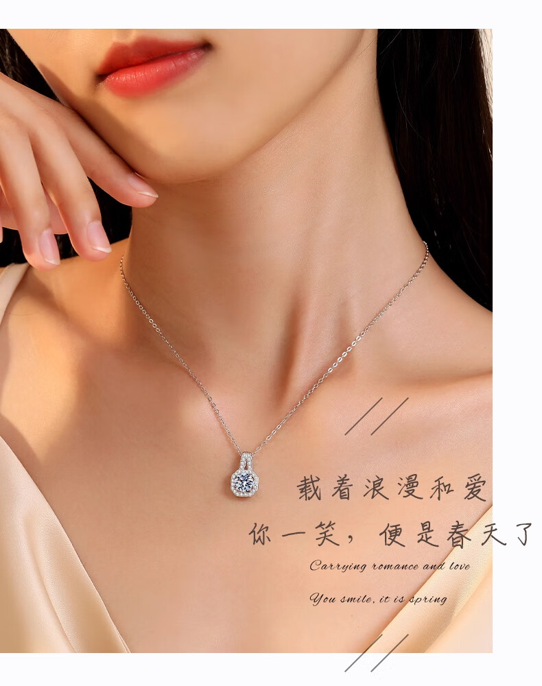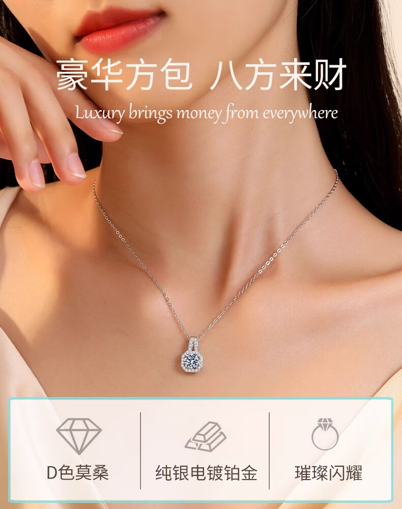Moissanite Pendant PT950 Platinum Necklace Luxury Square Package 18K Gold Necklace Valentine's Day Birthday Gift for Girlfriend Light Luxury Square Package Necklace + Square Gift Box