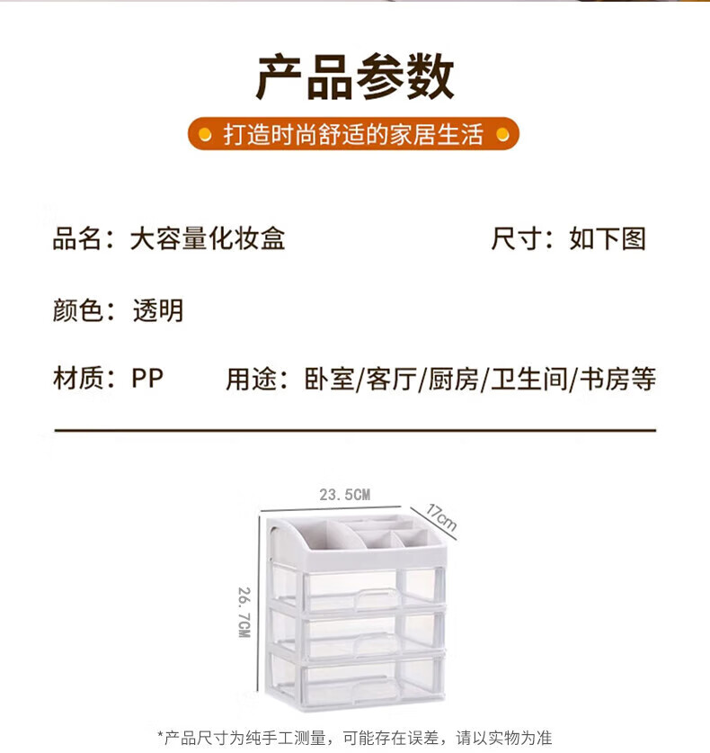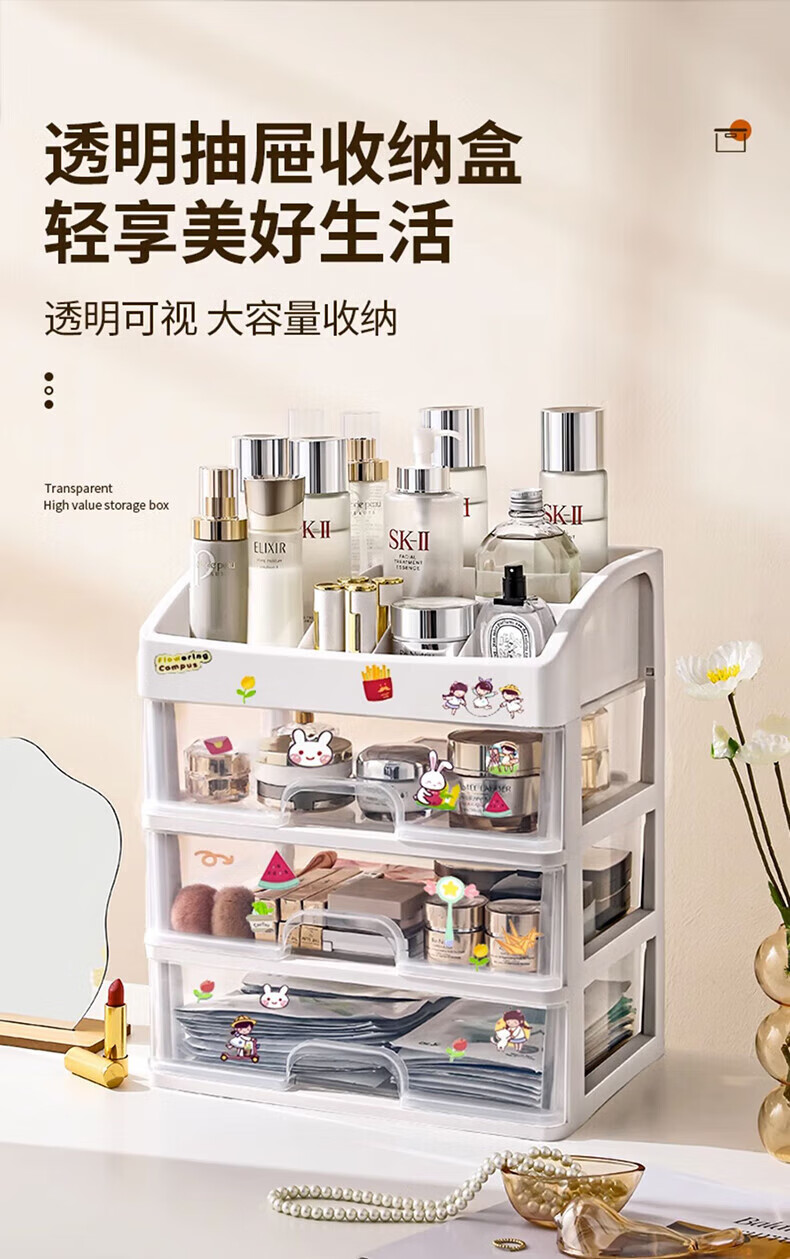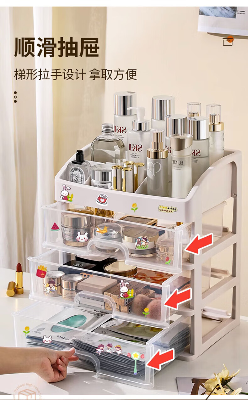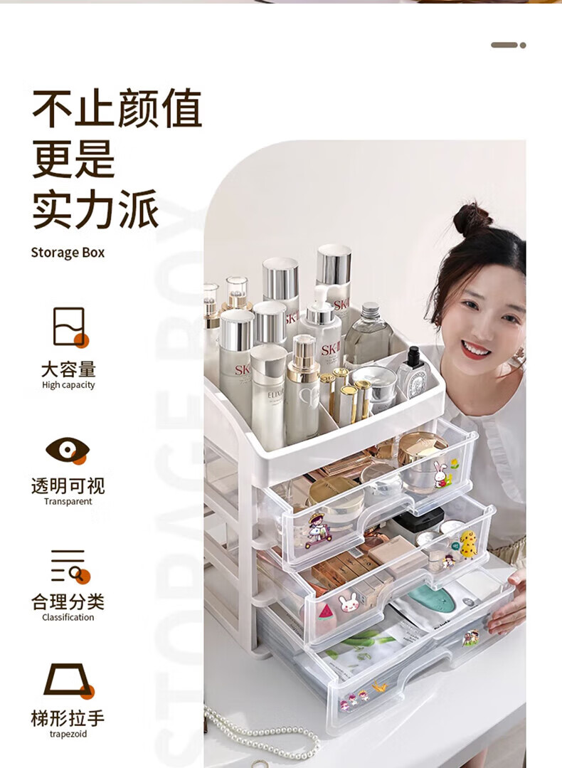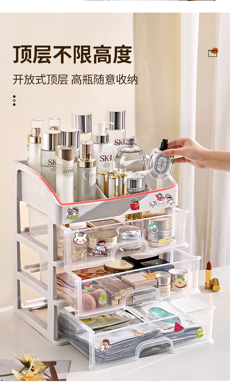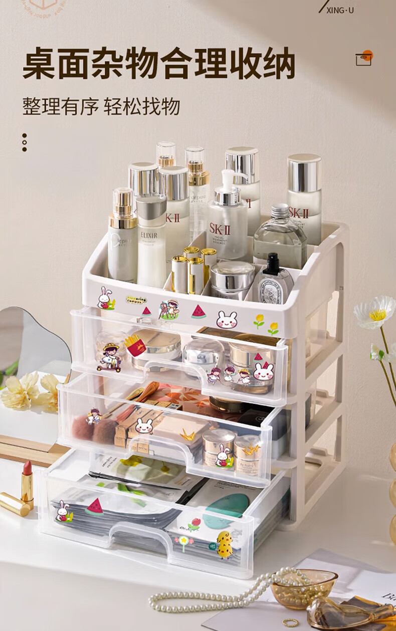 Jingchuan Asahi Cosmetic Storage Box Desktop Storage Rack Large Capacity Hair Accessories Sundry Storage Box Multi-layered Storage Rack White 4 layers 3 drawers 23.3*17*26.8cm Free random stickers