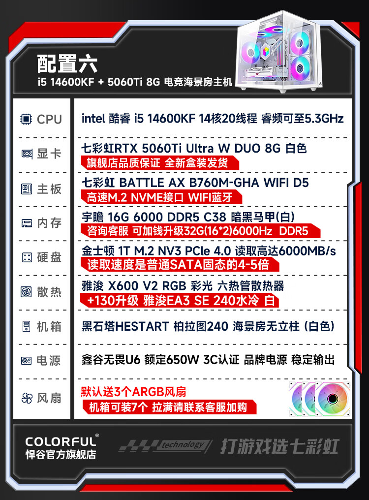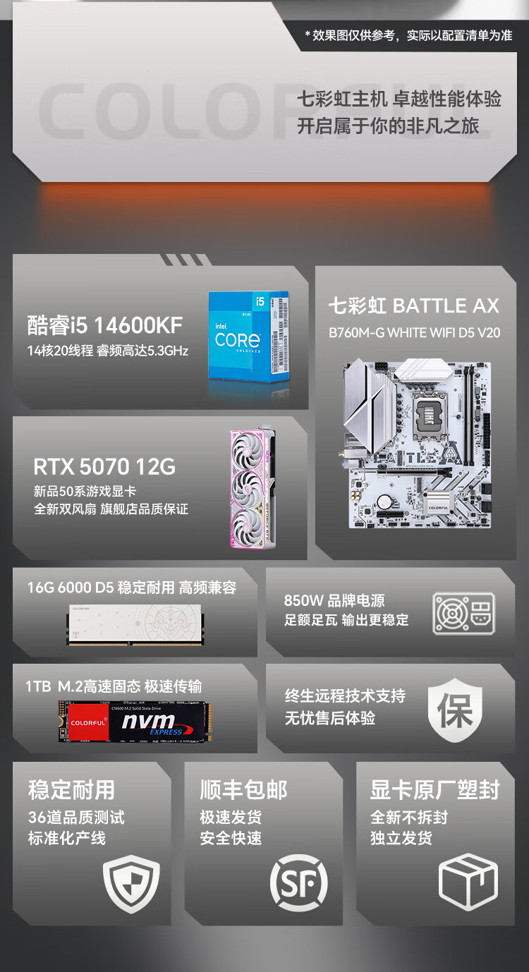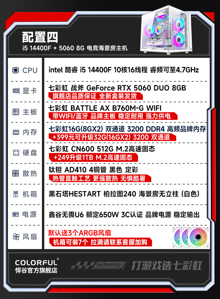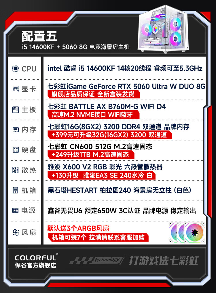 Colorful I5 13400F/14400F/14600KF 5050/5060ti/5070 graphics card assembly computer e-sports game console live broadcast design desktop computer DIY complete machine configuration one i5 12400F/RTX3050 6G