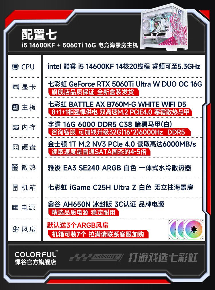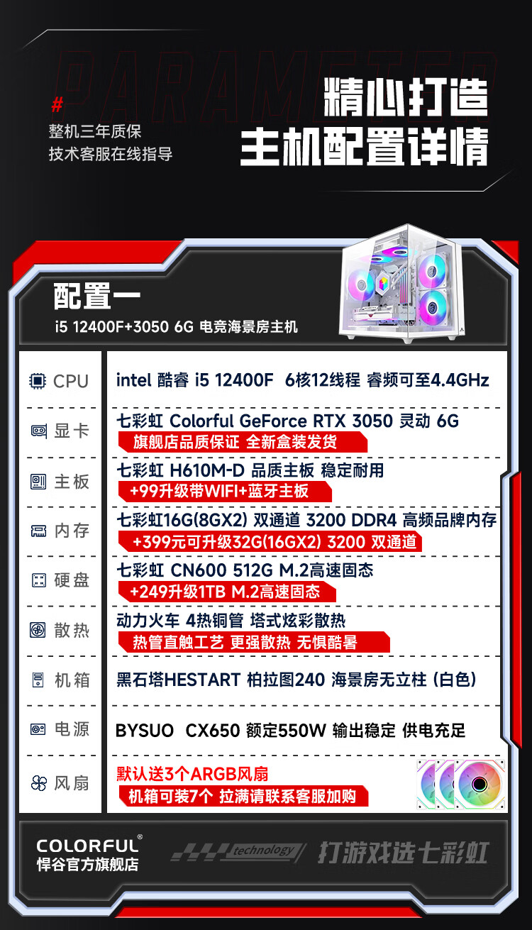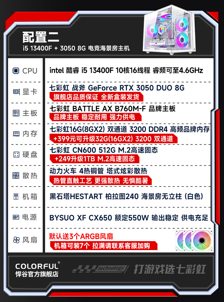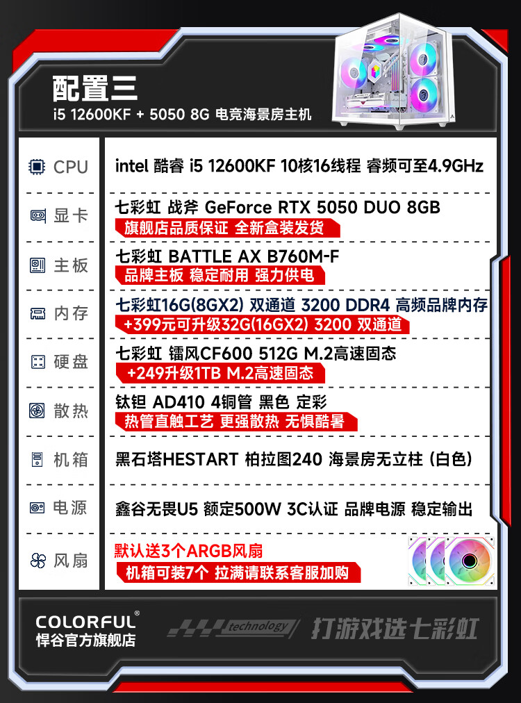 Colorful I5 13400F/14400F/14600KF 5050/5060ti/5070 graphics card assembly computer e-sports game console live broadcast design desktop computer DIY complete machine configuration one i5 12400F/RTX3050 6G